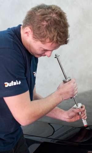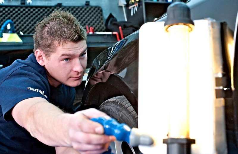 – Operowanie narzędziami od spodu blachy pozwala na dokładną likwidację powstałych uszkodzeń – wyjaśnia Daniel Rzyczniok, właściciel firmy Dufał z Katowic, zajmującej się usuwaniem wgnieceń bez lakierowania. – Dotyczy to w szczególności wgnieceń, które nie mają ostrych załamań i nie powstały na przetłoczeniach nadwozia.