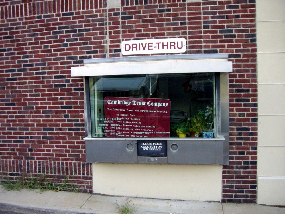 Dziś nie dziwi nas możliwość zamówienia jedzenia bez wychodzenia z samochodu. Drive-thru to jednak nie tylko łatwy dostęp do fast foodów. Kilkadziesiąt lat temu można było nie tylko zamówić kanapkę, ale również obejrzeć film czy wypłacić pieniądze. Pierwsze banki pozwalające na podjazd samochodem do okienka powstały w USA jeszcze na przełomie lat 30. i 40. XX wieku. W Europie, Credit Suisse – 7 czerwca 1962 roku – rozpoczęło obsługę zmotoryzowanych.
