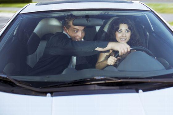 Ona: Fajnie by było, ale czy wypada mi zrobić pierwszy krok? A jak sprawy zajdą za daleko? Poobijam się o podsufitkę, kierownicę lub lusterko wsteczne. Nie wspominając o przekładni i hamulcu ręcznym! I niby gdzie mielibyśmy to robić? W lesie, na parkingu? A jak przyjedzie straż miejska, albo ktoś nas będzie podglądał, a potem znajdę siebie nagą na Youtube? Ciekawe, czy się z innymi kochał się w samochodzie? Och, jakie on ma cudownie aksamitne dłonie...