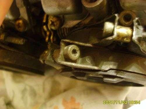Teraz najtrudniejsza część zadania-pomogą Nam zwinne palce i cierpliwość. Gaźniki są mocowane na takie same obejmy ale ze śrubami pod klucz 6-cio kątny. Musimy każdą poluzować. Dalej zajmujemy się linkami od gazu-trzeba je odkręcić i wyjąć. Między skrajnymi gaźnikami są węże zamocowane za pomocą trójniczków gumowych-jakoś musimy je wyjąć (delikatnie aby ich nie uszkodzić). Gdy wszystko mamy już poodkręcane delikatnie wyjmujemy gaźniki-są połączone se sobą więc nie powinniśmy się obawiać niczego.