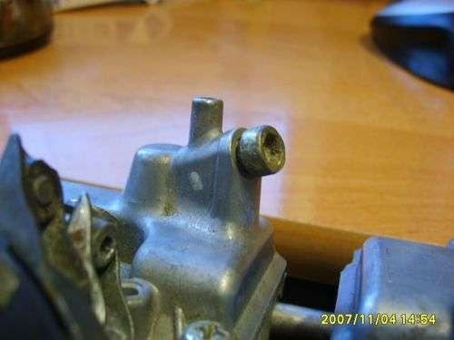 Pod każdym gaźnikiem jest śruba do spuszczenia paliwa z komory pływakowej. Bierzemy puszkę po konserwie i z każdej komory wylewamy cenną wachę (wiem, że troszkę szkoda ale niestety...).