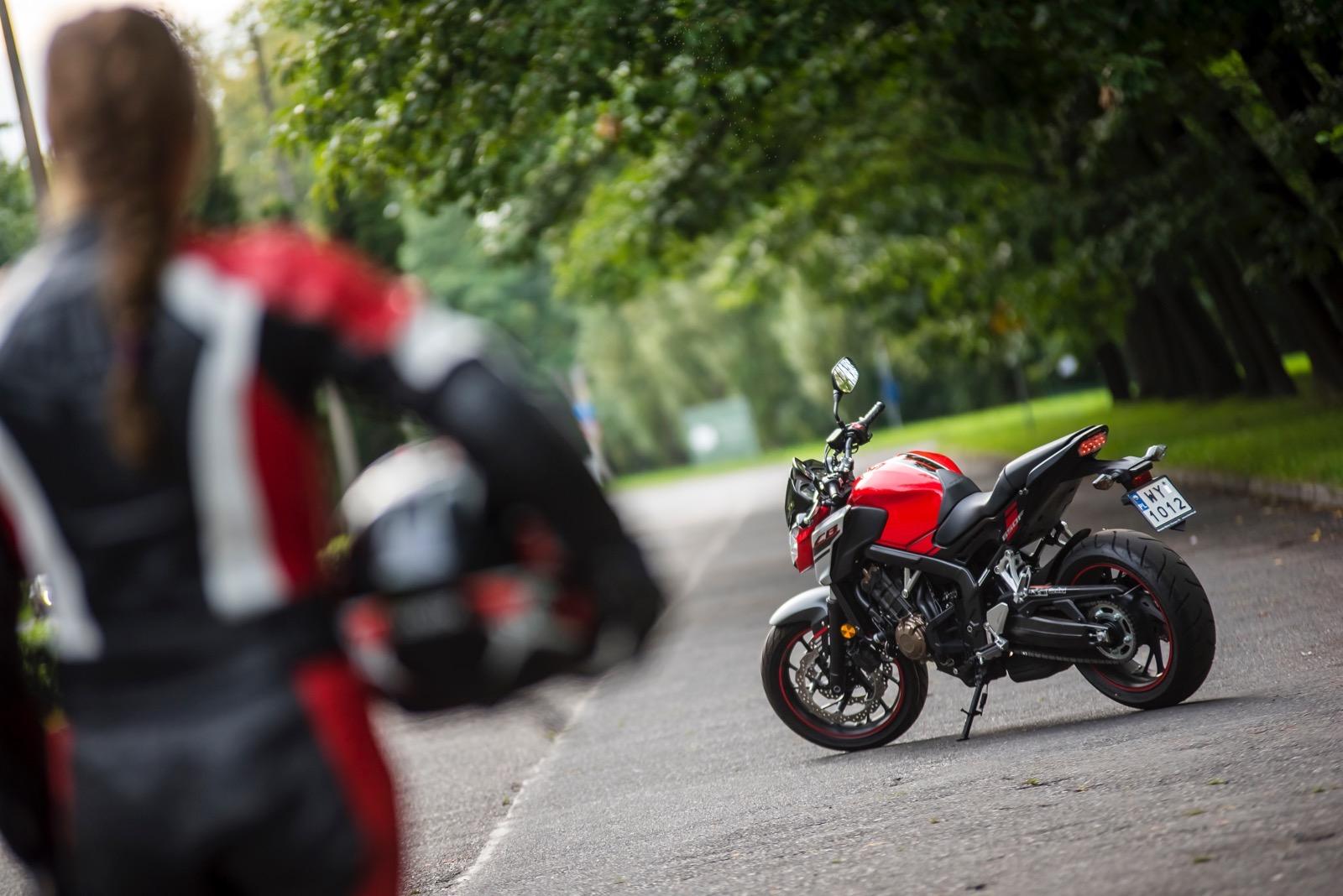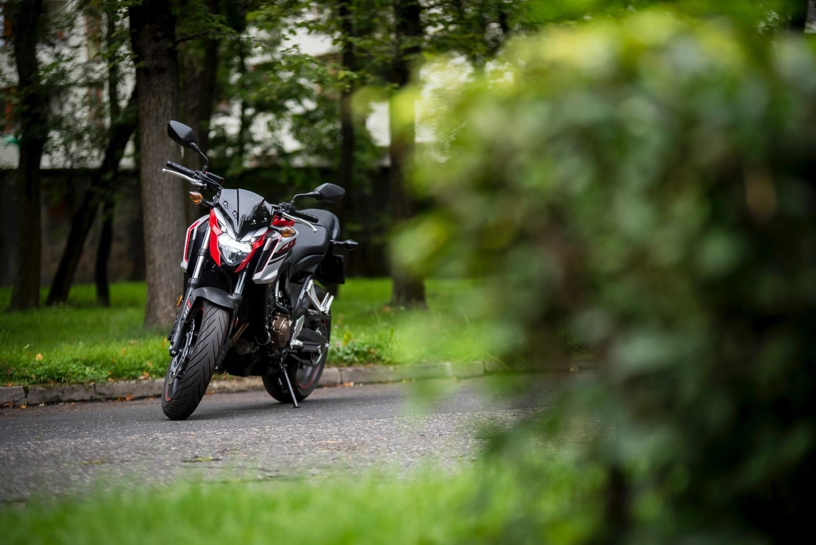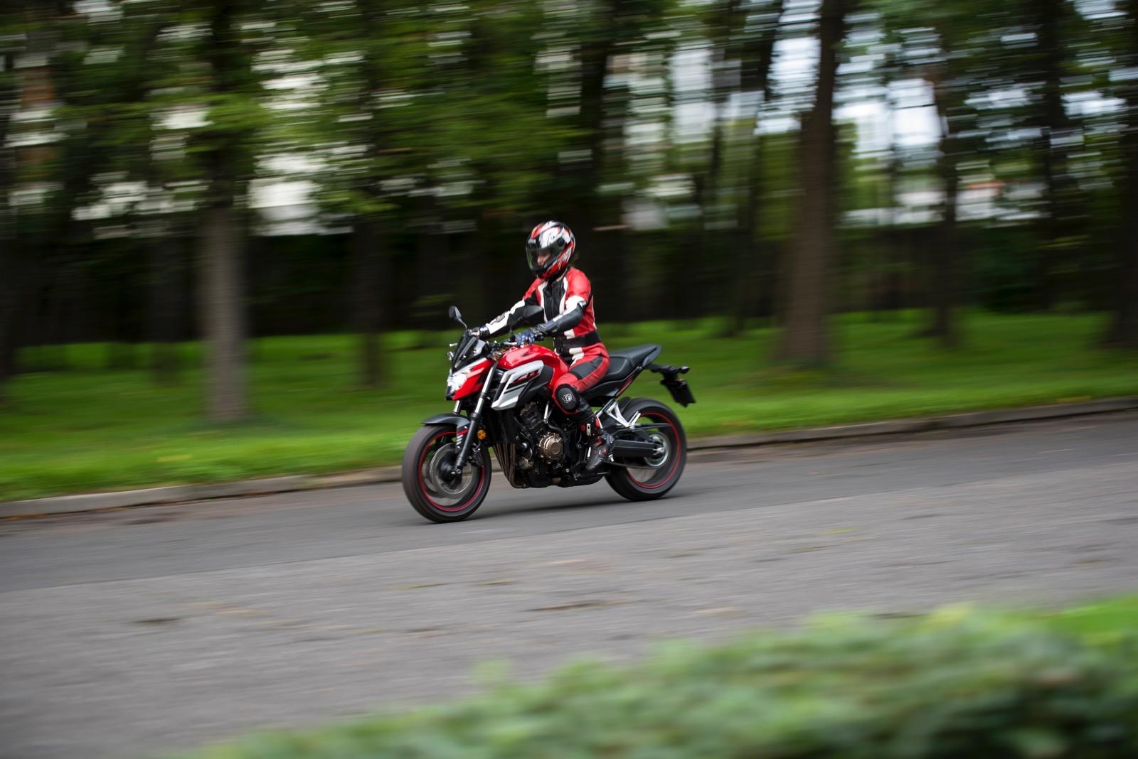Pod względem prowadzenia Honda nie zaskakuje – nadal prowadzi się tak samo pewnie i lekko jak poprzedniczka. Aczkolwiek w stosunku do quasi-konkurencyjnej (i mojej ukochanej) Yamahy MT-07 (która jednak ma silnik dwucylindrowy i o 16 KM mniejszą moc), jest nieco bardziej toporna. Masa robi swoje. Honda jest masywna nie tylko na pierwszy rzut oka – waży 208 kg (wliczając wypełnione zbiorniki oleju i paliwa), a MT-07 aż 26 kg mniej – 182 kg. Jednak mimo słusznej masy, Honda jest łatwa i przyjemna w prowadzeniu.