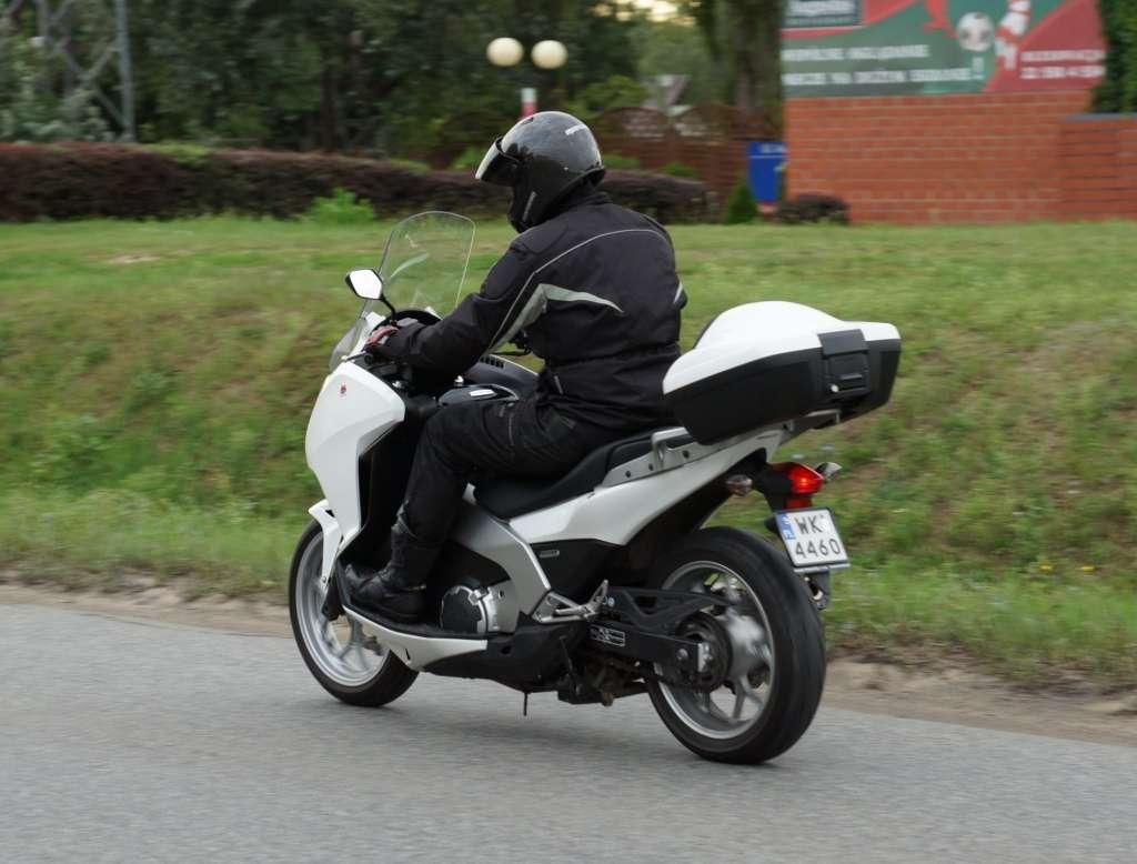 Integrę odpalamy jak najzwyklejszy motocykl. Zamiast sięgnąć do klamki sprzęgła (jej miejsce zajęła dźwignia hamulca) i wbijać pierwszy bieg, naciskamy jednak przycisk D. Szarpnięcie. DCT załączyło właśnie "jedynkę". W przeciwieństwie do samochodowych przekładni, motocyklowa skrzynia z dwoma sprzęgłami nie zaczyna przenoszenia momentu obrotowego w momencie zdjęcia nogi z pedału hamulca. Proces rozpoczyna się po odkręceniu gazu. 2500 obr./min i... już jedziemy na "dwójce". Skrzynia dąży do maksymalnego wykorzystania spłaszczonej krzywej przebiegu momentu obrotowego. Jednocześnie algorytm sterujący analizuje i "uczy" się reakcji kierowcy. Nie zabrakło też tradycyjnej funkcji kick-down. W razie potrzeby skrzynia DCT jest w stanie zejść nawet o trzy biegi niżej, zapewniając maksymalne przyspieszenie. Zmiany biegów odbywają się sprawnie i płynnie, a skrzynia nie ma problemów z dopasowaniem przełożenia do sytuacji.