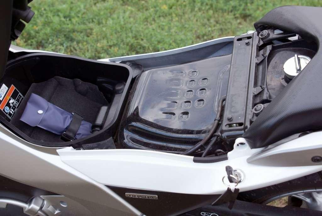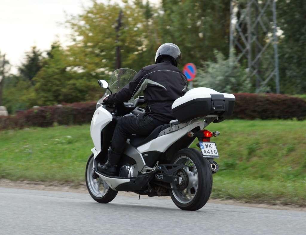 Kto przepada za dłuższymi wyprawami, będzie musiał dopłacić za kufry - centralny ma 40 litrów pojemności, a boczne 29 l. Możliwości przewozowe Integry w standardowym wydaniu są ograniczone. Główny schowek znajduje się pod kanapą. Ma 15 litrów pojemności, ale jego ukształtowanie uniemożliwia schowanie kasku integralnego. Kolejną skrytkę - na telefon lub klucze, znajdziemy na wysokości lewego kolana. Warto dodać, że tuż pod nią znajduje się dźwignia sterująca... hamulcem postojowym!