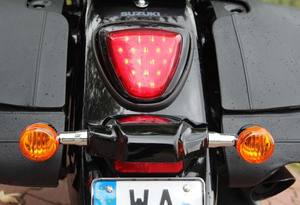 Suzuki zamontowało przy przednim kole pojedynczą tarczę z dwutłoczkowym zaciskiem. Zarówno siła hamowania, jak i dozowalność układu odstają od potencjału silnika. ABS nie jest dostępny nawet za dopłatą. Jedynym pocieszeniem jest konieczność przyłożenia znaczniej siły do klamki hamulca – o przypadkowe zablokowanie koła będzie trudno. Warto wyrobić sobie nawyk korzystania z dwóch hamulców jednocześnie. W Intruderze wspomaganie się tylnym hamulcem przynosi naprawdę dobre efekty.