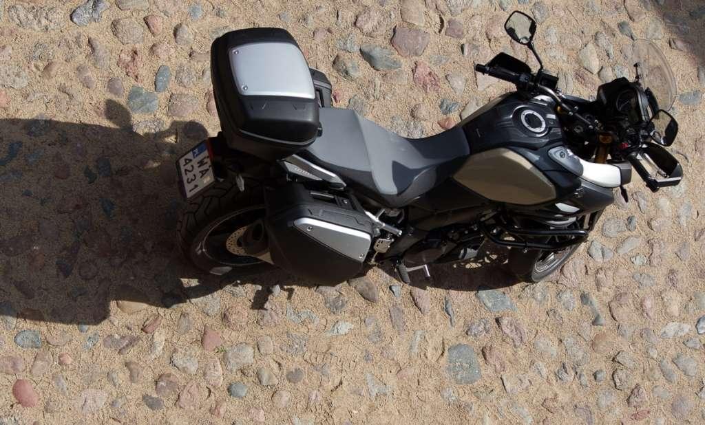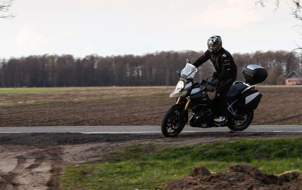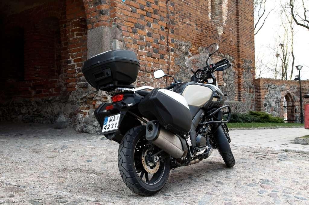 228-kilogramów masy własnej V-Stroma jest odczuwalne m.in. przy próbach szybkich zmian kierunku jazdy. W turystycznych enduro znaczny ciężar trudno uznać za wadę. Zwykle okazuje się sprzymierzeńcem kierującego – ogranicza wrażliwość motocykla na wpływ wiatru bocznego oraz zwiększa stabilność podczas jazdy po zniszczonej nawierzchni.