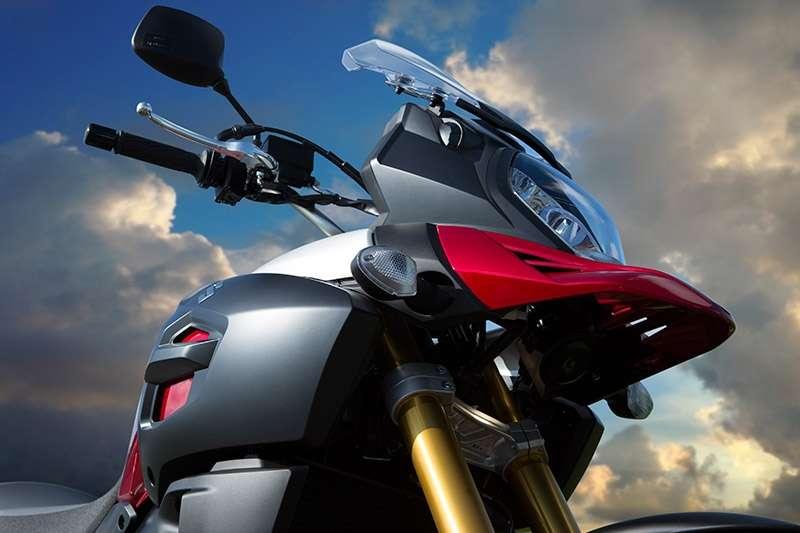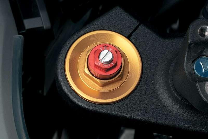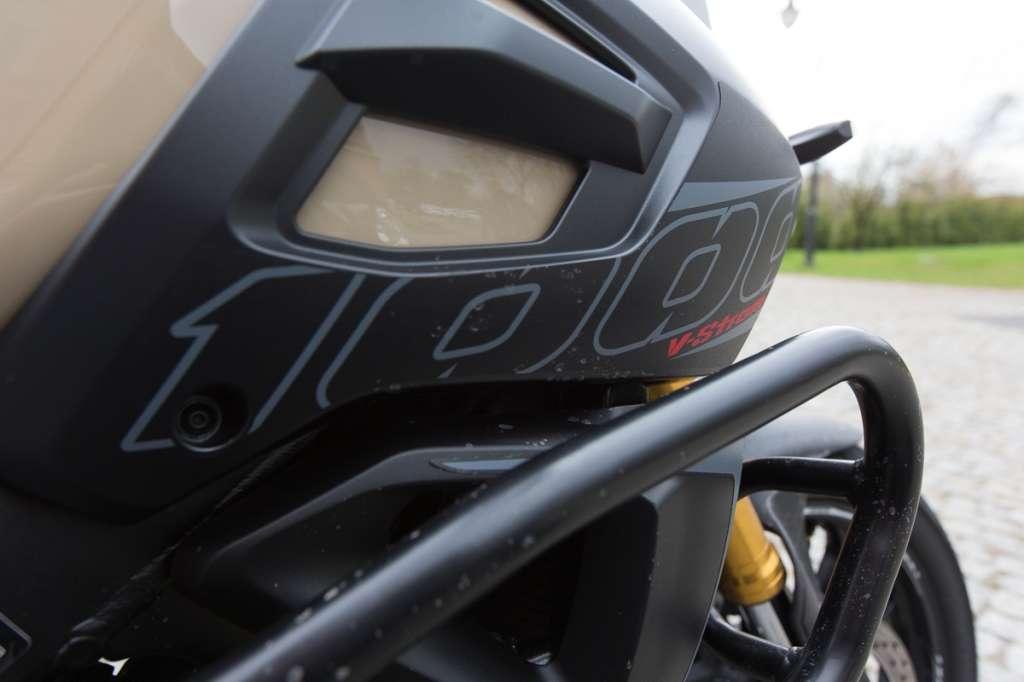 Szyba otrzymała opatentowany przez Suzuki system regulacji kąta nachylenia – jej położenie można zmieniać ręką podczas jazdy. Przewidziano też regulację wysokości. Konieczny będzie jednak krótki postój i sięgnięcie po klucz. Brzmi dobrze. A jak chroni przed wiatrem? Przeciętnie. Kto planuje wypady na drugi koniec Europy, najprawdopodobniej będzie szukał wyższej szyby z mocniej wyprofilowanym deflektorem.