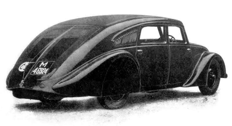 Przestronne i długie, bo mierzące dokładnie 5,20 metra nadwozie przypominało swym wyglądem... pstrąga. Aerodynamiczną karoserię wieńczył potężny ogon, pod którym mieściła się prawdziwa rewolucja – ośmiocylindrowy silnik o pojemności trzech litrów i mocy 60 KM, który bez problemów rozpędzał 1700-kilogramowe auto do 150 km/h. Z jednostką napędową współpracowała czteroprzekładniowa skrzynia biegów.