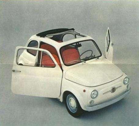 Z tyłu pojazdu praktycznie nie było siedzeń, a jedynie miejsce na bagaż. Model posiadał dość specyficzny klakson umieszczony na kolumnie kierownicy. Jakby udziwnień było mało, włącznik kierunkowskazów znajdował się w centralnym miejscu deski rozdzielczej. Auto kosztowało jedynie 465 tysięcy lirów. Nieoczekiwanie, wielkim przebojem okazała się wersja Fiata 500 z „gangsterskimi” oponami z białymi obwódkami. Można ją było zamówić za 40 tysięcy lirów dopłaty.