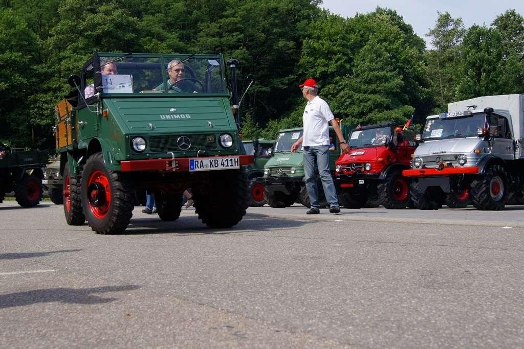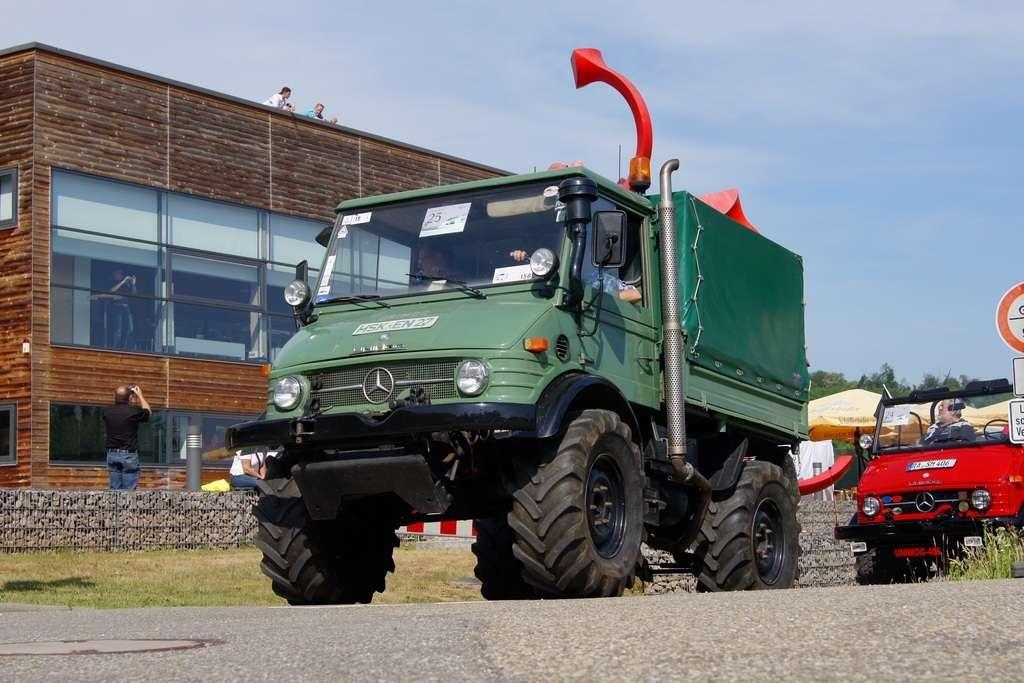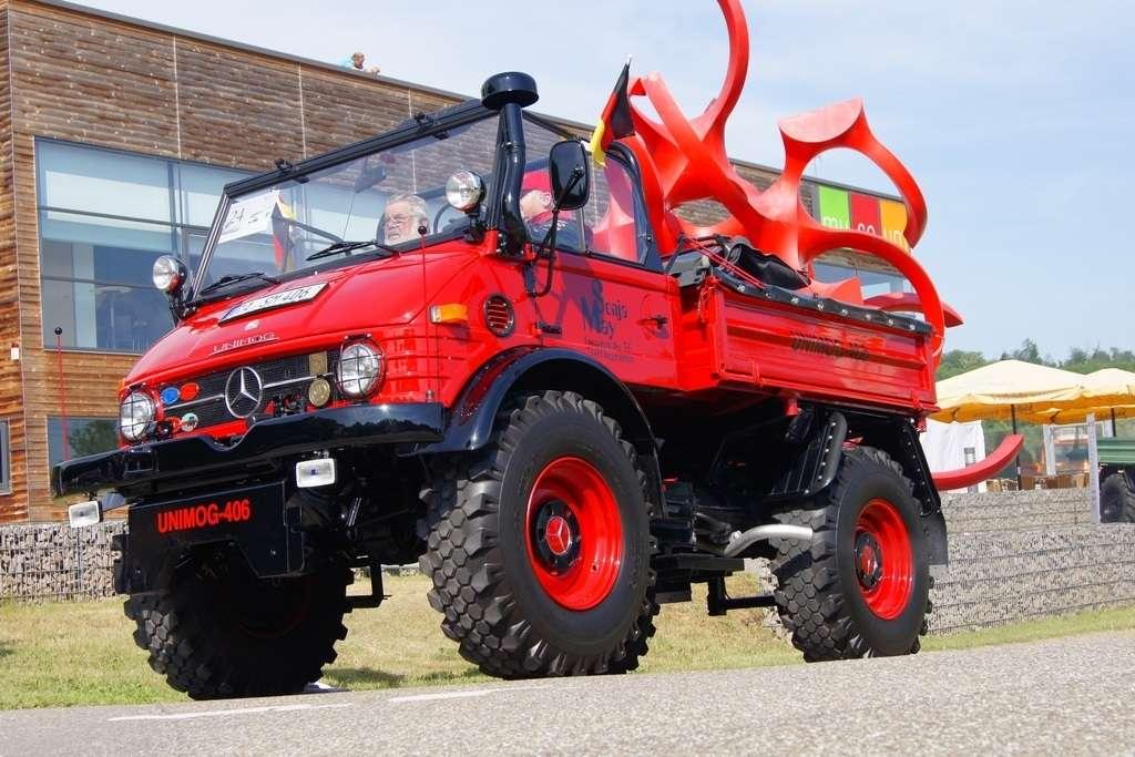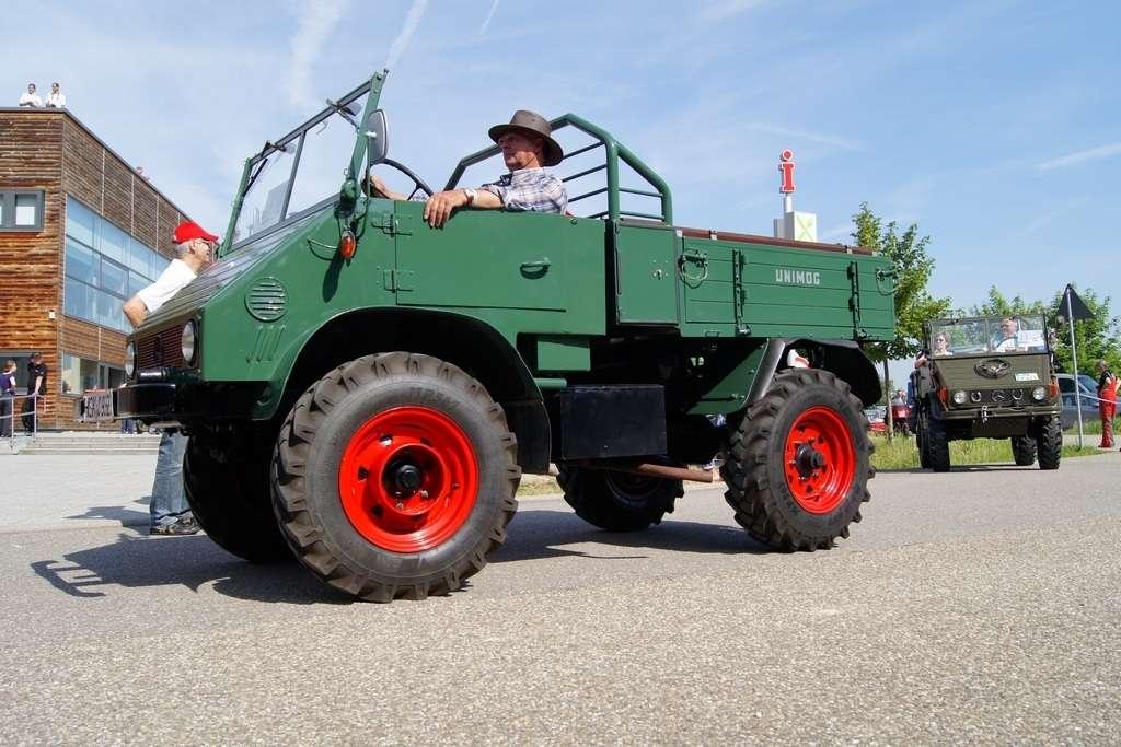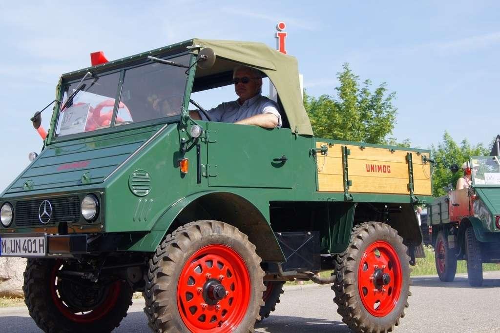 W założeniach miała to być siła robocza, mająca przewagę nad konwencjonalnymi traktorami i w maksymalnym stopniu odciążająca rolników. Takie podejście przyjął Albert Friedrich, niegdyś szef działu projektów silników lotniczych w koncernie Daimler-Benz, który w październiku 1945 zdobył -od amerykańskich sił okupacyjnych- pozwolenie na produkcję. Jako partnera w celu zaprojektowania i produkowania pojazdu Friedrich wybrał spółkę Erhard & Söhne. 1 października 1946 roku pokazano prototypowy pojazd, który nazwano UNIMOG, co było skrótem pełnej nazwy „Universalmotorgerät” (urządzenie silnikowe o wszechstronnym zastosowaniu). Duże interesowanie sprawiło, że w fazie produkcyjnej od jesieni 1948 r. do jesieni 1950 r., udało się sprzedać 600 pojazdów i … to przerosło możliwości produkcyjne spółki Erhard & Söhne. Produkcję przejęła wówczas fabryka Daimler Benz, która pierwszy model wyprodukowała 3 czerwca 1951 roku. Mijające właśnie sześćdziesiąt lat, w miasteczku Wörth (gdzie są zakłady) stało się -w sobotę 4 czerwca - pretekstem do festynu i wspomnień.