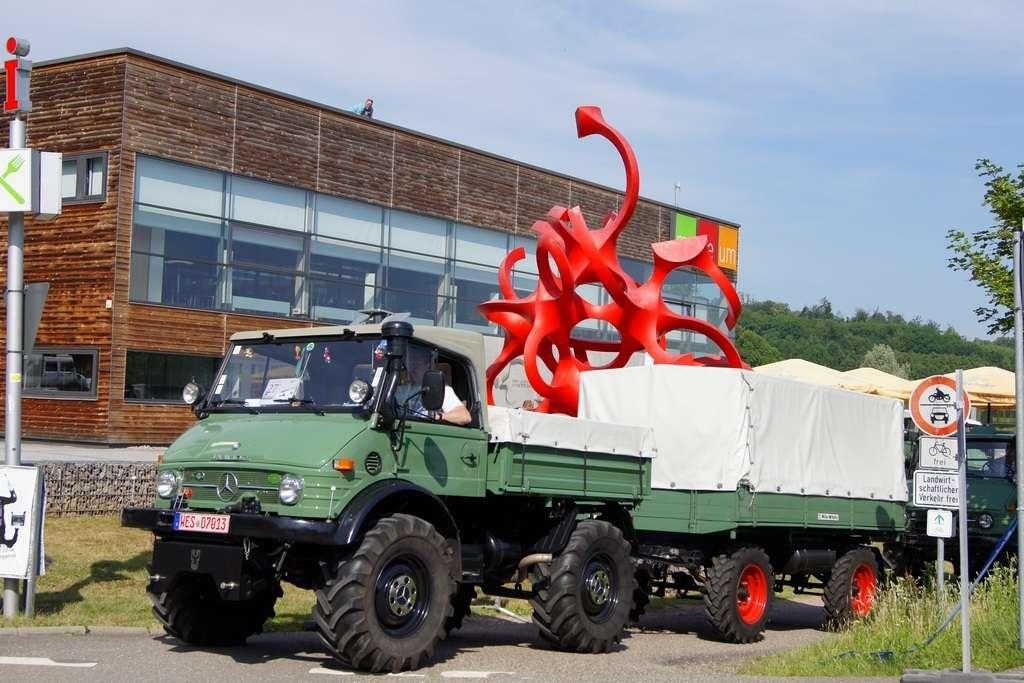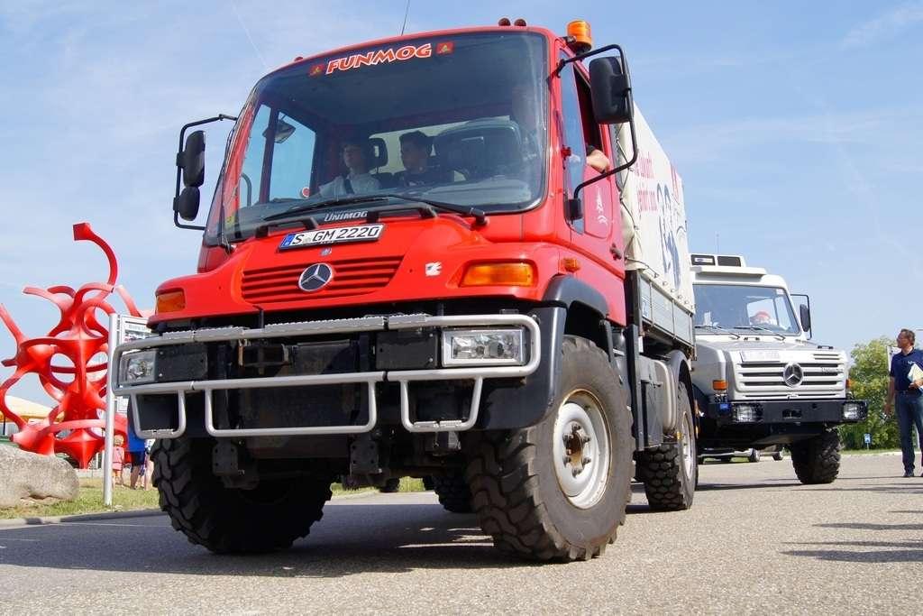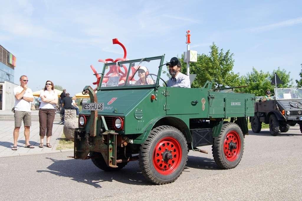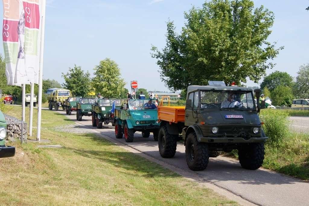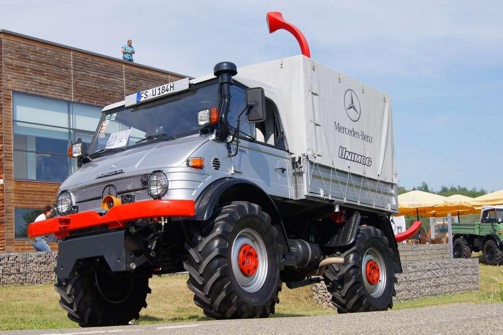 W założeniach miała to być siła robocza, mająca przewagę nad konwencjonalnymi traktorami i w maksymalnym stopniu odciążająca rolników. Takie podejście przyjął Albert Friedrich, niegdyś szef działu projektów silników lotniczych w koncernie Daimler-Benz, który w październiku 1945 zdobył -od amerykańskich sił okupacyjnych- pozwolenie na produkcję. Jako partnera w celu zaprojektowania i produkowania pojazdu Friedrich wybrał spółkę Erhard & Söhne. 1 października 1946 roku pokazano prototypowy pojazd, który nazwano UNIMOG, co było skrótem pełnej nazwy „Universalmotorgerät” (urządzenie silnikowe o wszechstronnym zastosowaniu). Duże interesowanie sprawiło, że w fazie produkcyjnej od jesieni 1948 r. do jesieni 1950 r., udało się sprzedać 600 pojazdów i … to przerosło możliwości produkcyjne spółki Erhard & Söhne. Produkcję przejęła wówczas fabryka Daimler Benz, która pierwszy model wyprodukowała 3 czerwca 1951 roku. Mijające właśnie sześćdziesiąt lat, w miasteczku Wörth (gdzie są zakłady) stało się -w sobotę 4 czerwca - pretekstem do festynu i wspomnień.