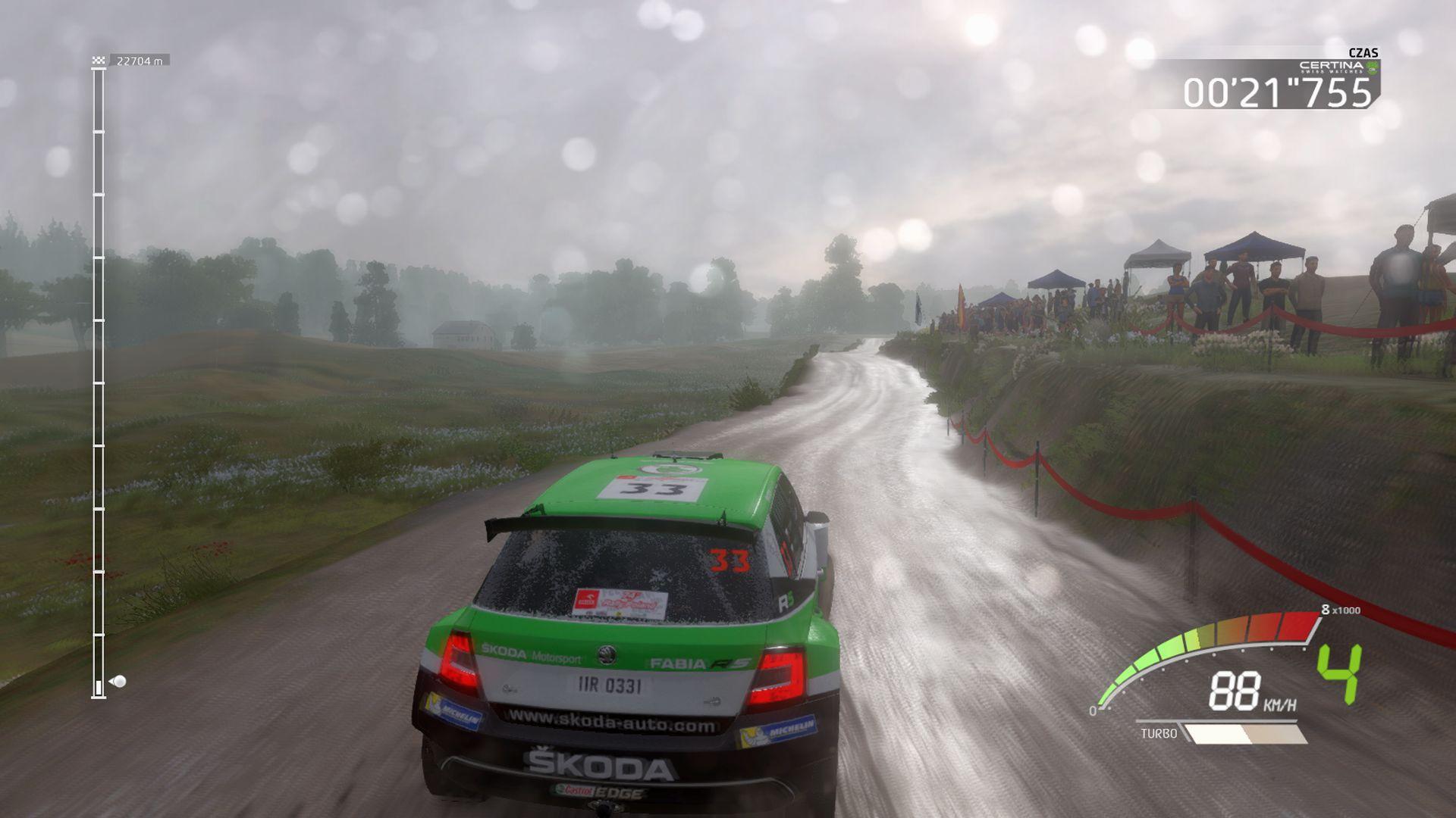 Oczywiście oprócz tego czeka nas skute lodem Monte Carlo, błotnista Wielka Brytania, techniczna Sardynia czy zasypana śniegiem Szwecja. Bez znaczenia, do którego kraju trafimy, zapomnijmy o beztroskiej jeździe szerokimi arteriami, po których będziemy bezstresowo zawijać bokami. Owszem, znajdziemy długie i dość równe fragmenty, ale w większości przypadków przyjdzie nam walczyć z dziurami, koleinami, nierównościami, kamieniami i wszędobylskimi przeszkodami. Jadąc po takim terenie, naprawdę trudno utrzymać kontrolę nad pojazdem. W tym momencie warto wrócić do uwag z poprzedniego akapitu, dotyczących trudności z utrzymaniem auta na trasie oraz losowym oddziaływaniem pada na zachowanie auta.