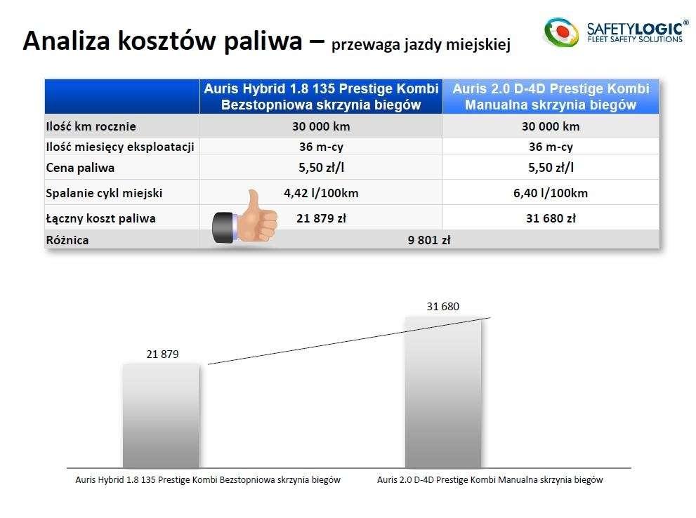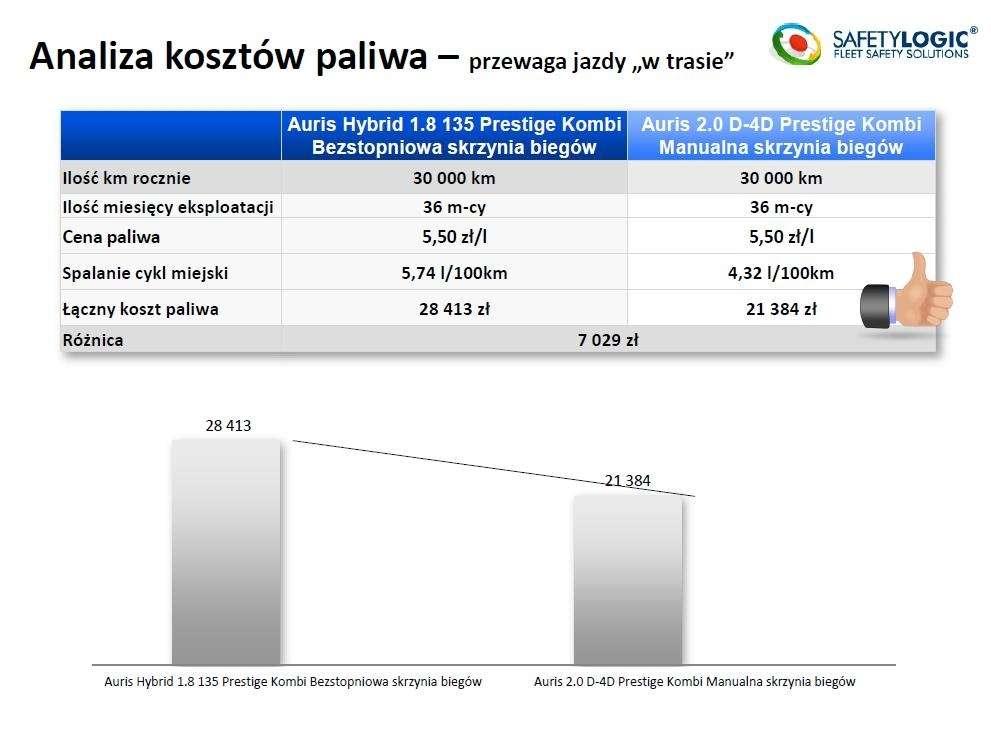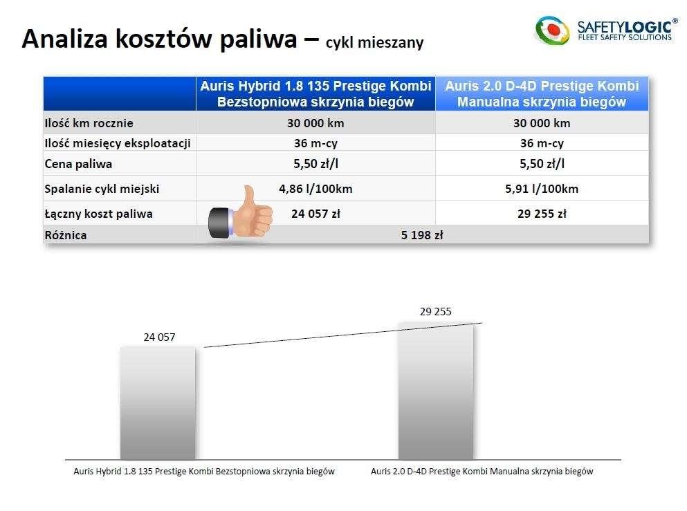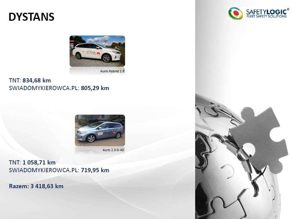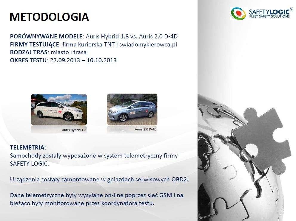Test został przeprowadzony zarówno w warunkach miejskich, jak i w trasie w okresie od 27.09.2013 do 10.10.2013. Testami objęto dwa modele Toyoty Auris - Auris Hybrid 1.8 oraz Auris 2.0 D-4D. Co ciekawe, była to swego rodzaju rywalizacja z końcowym porównaniem. Co więcej, nie było mowy o błędzie ludzkim czy jakimkolwiek przeoczeniu, gdyż samochody zostały wyposażone w system telemetryczny firmy SAFETY LOGIC. Urządzenia zostały zamontowane w gniazdach serwisowych OBD2, zaś dane telemetryczne były wysyłane on-line poprzez sieć GSM i na bieżąco były monitorowane przez koordynatora testu.