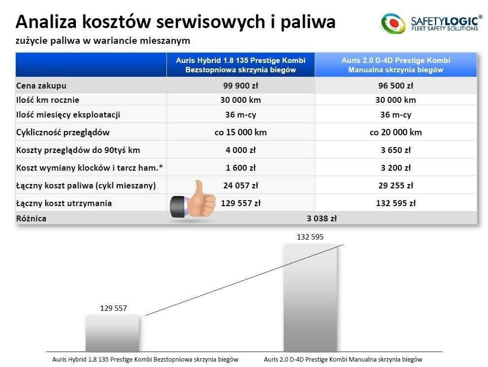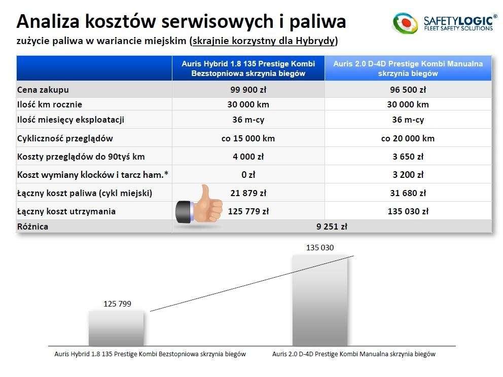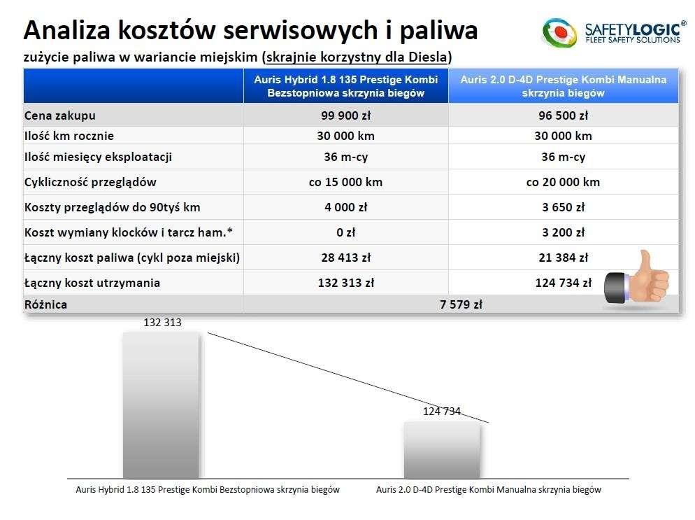 Wyniki testów okazały się niezwykle ciekawe (szczegóły na załączonych grafikach). W wielkim skrócie: Okazało się, że wariant hybrydowy ma dość znaczącą przewagę w mieście - generuje spore oszczędności w porównaniu do alternatywy wysokoprężnej. Jeśli jednak wyjedziemy autem w trasę, zalety przechodzą na stronę auta z silnikiem Diesla. W ogólnym rozrachunku, czyli w cyklu mieszanym na fotel lidera wraca hybryda, choć przewaga nie jest olbrzymia. W przypadku kosztów serwisowych o kilka procent znów wygrywa hybryda - nie jest to jednak miażdżące zwycięstwo. Poniżej publikujemy wnioski z testów.