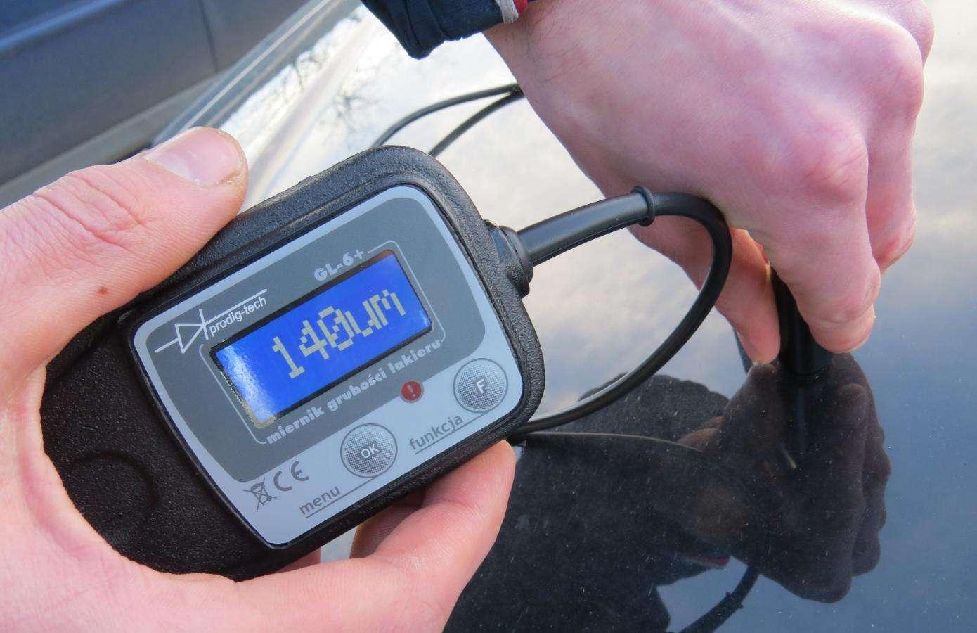 Jak działają tego typu grubościomierze? Specjalistyczny miernik sprawdza warstwę lakieru nałożoną na blachę samochodową stalową, ocynkowaną i aluminiową. Precyzyjny pomiar umożliwia dokładną weryfikację karoserii. Miejsca, gdzie wartość pomiaru odbiega od normy, z pewnością były naprawiane. Oryginalna warstwa lakieru ma grubość 80-150 mikrometrów. Przekroczenie granicy 180 jednostek świadczy o malowaniu danego elementu. Jeśli wartość pojawiające się na wyświetlaczu miernika to kilkaset mikrometrów, wskazane miejsce było szpachlowane. Ma więc za sobą burzliwą przeszłość.