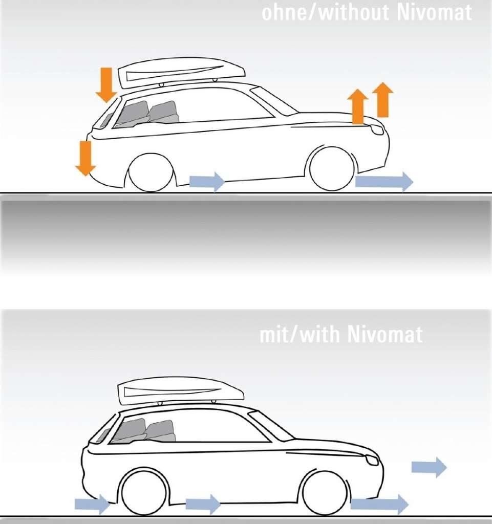 W samochodach z klasycznym zawieszeniem ładunek wpływa na wypoziomowanie nadwozia. Wypełniony po brzegi bagażnik pogarsza precyzję prowadzenia i charakterystykę zawieszenia, które w pełnym ugięciu przestaje skutecznie wybierać nierówności. Problemy można rozwiązać, stosując Nivomat.