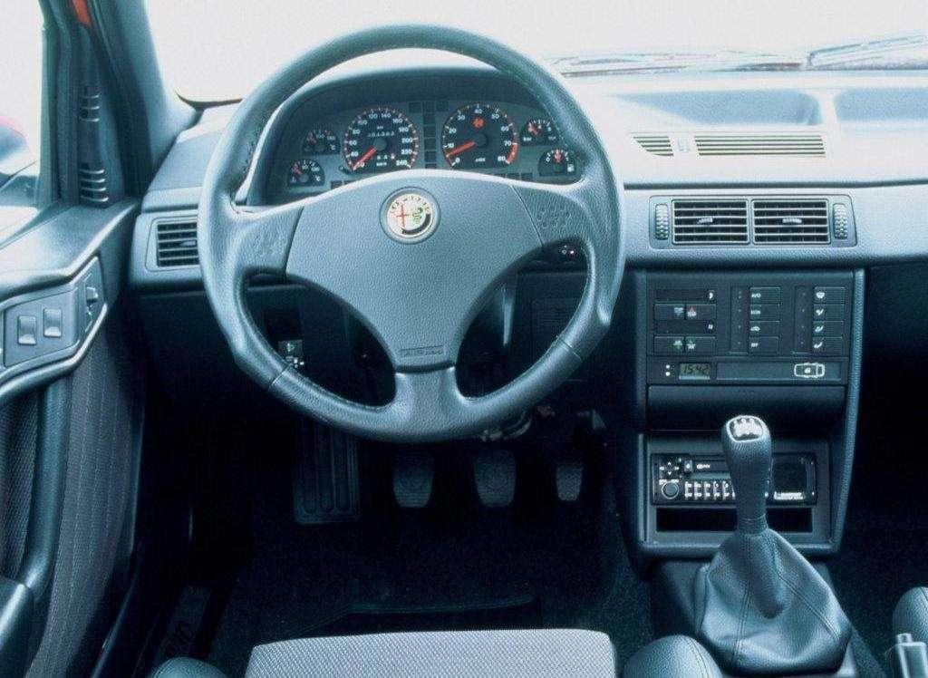 Mierzące 444 cm auto oferowało przyzwoitą ilość miejsca w środku. Mimo, że rozstaw osi, wynoszący 254 cm, do rekordowych nie należał, to jednak za sprawą dość wygodnych foteli i całkiem przyzwoitego ich wyprofilowania podróż sedanem Alfy Romeo upływała w całkiem sympatycznych warunkach. Nieco nudnawa deska rozdzielcza niestety nie zachwycała.