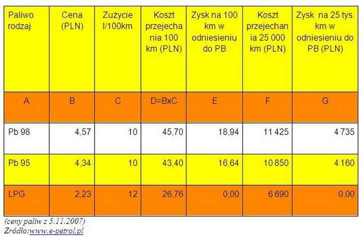 Podjęcie decyzji o zamontowaniu samochodowej instalacji gazowej uzależnione jest głównie od ilości kilometrów przejeżdżanych w ciągu roku. Jeżeli samochód zużywa np. 10 litrów benzyny na 100 km, to na przejechanie tego samego dystansu będzie potrzebował ok. 11-12 litrów gazu. Za 100 km na benzynie płacimy ponad 45 zł (przy cenie Pb 98 4,57 ), a na gazie –26 zł (przy cenie LPG 2,23 zł/l). Oszczędzamy więc około 19 zł na każdych 100 km. Przy rocznym przebiegu samochodu, który wynosi na przykład ok. 25 tys. km (średnio 2 tys. km/m-c) zostaje w kieszeni ponad 4 700 zł oszczędności.