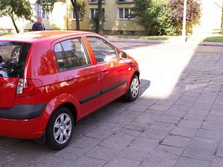 Pojazd w momencie rozpoczęcia testu miał na liczniku przebieg 6 800 km i został kupiony jako nowy w salonie dealerskim. O sukcesie rynkowym Getza zdecydowała stonowana, aczkolwiek przyjemna dla oka linia nadwozia, nawiązująca stylistyką do vanów, nowoczesna paleta silników oraz korzystna cena zakupu, połączona z 3 letnią gwarancją mechaniczną. Samochód pomimo 6 letniej obecności na rynku nie wygląda staro. Do poprawy wyglądu, zapewne przyczynił się lifting, obejmujący przednie i tylne lampy, zderzak tylny i deskę rozdzielczą, przeprowadzony w 2005 roku. W wersji Comfort elegancji dodają klamki i obudowy lusterek lakierowane w kolorze nadwozia. Testowany egzemplarz pokryty był pięknym, czerwonym lakierem, który mnie przypadł do gustu. Nasyciwszy oczy intensywnością czerwieni, wsiadam do środka, które jest niestety ponure. Wszędzie szarość, szarość, szarość….