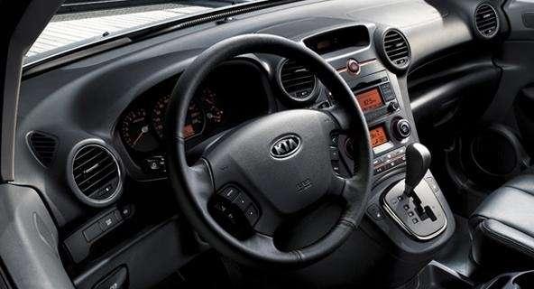 Na plus zapisać należy przestronność wnętrza – ilość miejsca zarówno na przednich siedzeniach, jak i na tylnej kanapie, zasługuje na słowa uznania. Opcjonalnie Carens może służyć także za auto siedmioosobowe, jednak na ostatnich dwóch fotelach, tych „w bagażniku”, radzimy przewozić tylko nieprzyjaciół – jest tam bardzo ciasno. Na dodatek bagażnik, który w takiej konfiguracji pozostaje do dyspozycji, zmieści zaledwie 70 l bagażu – to wystarczy na jedną walizkę. Co innego po złożeniu drugiego i trzeciego rzędu siedzeń – wówczas przestrzeń bagażowa rośnie ze standardowych 410 l do ponad 2 m3, przy czym podłoga pozostaje idealnie płaska. Na wypadek podróżowania z gromadką dzieci producent przewidział liczne schowki i uchwyty – ich mnogość pozwala nie martwić się o bałagan we wnętrzu auta.
