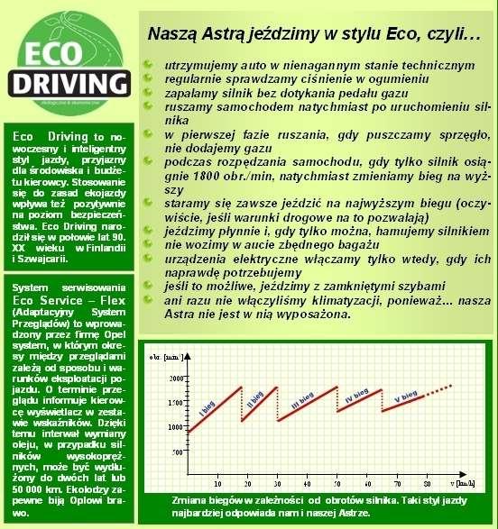 Średnie spalanie kompaktowego auta na poziomie niższym niż 5 l/100km należy niewątpliwie uznać za sukces. W jaki sposób można zatem osiągnąć tak imponujący wynik? Odpowiedź jest prosta: stosując zasady Eco Drivingu. Za takie traktowanie każdy samochód odwdzięczy się nam po stokroć. Nie dość, że na stacji benzynowej będziemy rzadkimi gośćmi, to jeszcze niską emisją spalin przyczynimy się do ochrony środowiska. Ponadto ekojazda sprawi, że zużycie wszystkich mechanizmów będzie znikome. Sami tego doświadczyliśmy: tarcze i klocki hamulcowe w naszej Astrze są jak nowe, a bieżnik opon ma grubość 6 mm. Jeśli więc chcemy chronić środowisko, swój samochód i własną kieszeń, przeczytajmy uważnie zasady Eco Drivingu i… wprowadźmy je w życie.