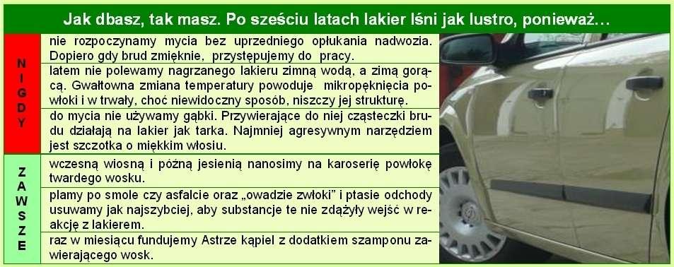 Jak widać, eksploatacja tego modelu to czysta przyjemność. Czynności obsługowe sprowadzają się więc do odwiedzin (co dwa lata lub 50 000 km) firmy Serwis Haller w Gdańsku. Auto przechodzi wtedy gruntowny przegląd Eco Service – Flex, a my z lubością raczymy się aromatyczną kawą, którą wraz z miłą i fachową obsługą oferują nam pracownicy salonu. Oprócz przeglądów systematycznie kontrolujemy ciśnienie w ogumieniu oraz poziom oleju (na 55 555 km dolaliśmy, poza wymianami, 1,5 l). Do tego dochodzą jeszcze prace związane z myciem i pielęgnacją powłoki lakierniczej. Nie bez satysfakcji stwierdzamy, że jest ona w doskonałym stanie, a stosowanie kilku, naprawdę bardzo prostych, zasad pozwala przez długie lata cieszyć się jej lustrzanym połyskiem. I na tym kończą się wszelkie czynności obsługowe, jakich wymaga od nas nasza Astra. Każdemu użytkownikowi samochodu życzymy podobnego „bezrobocia”.