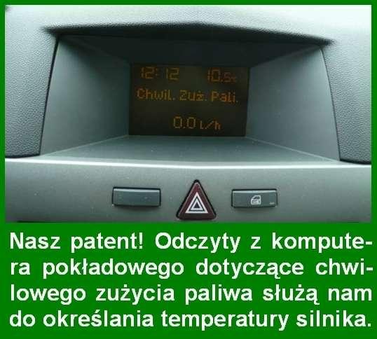 Do wyglądu zegarów nie mamy żadnych zastrzeżeń – są czytelne, a ich podświetlenie nie męczy wzroku kierowcy. Natomiast bardzo dziwi nas fakt, że samochód tej klasy został pozbawiony wskaźnika temperatury silnika. Co prawda, w zestawie lampek kontrolnych znajduje się taka, która swoim czerwonym błyskaniem poinformuje nas o niebezpieczeństwie przegrzania silnika, ale w codziennej eksploatacji niezbędna dla kierowcy jest wiedza, kiedy osiąga on optymalną temperaturę pracy. Znaleźliśmy na to sposób. Jako termometr cieczy chłodzącej wykorzystujemy… wskazania komputera pokładowego. Jeśli chwilowe zużycie paliwa silnika pracującego na wolnych obrotach utrzymuje się na poziomie 0,3 l/h mamy pewność, że jest on całkowicie nagrzany i można, bez obawy o uszkodzenie turbosprężarki, wykorzystywać jego pełne możliwości.