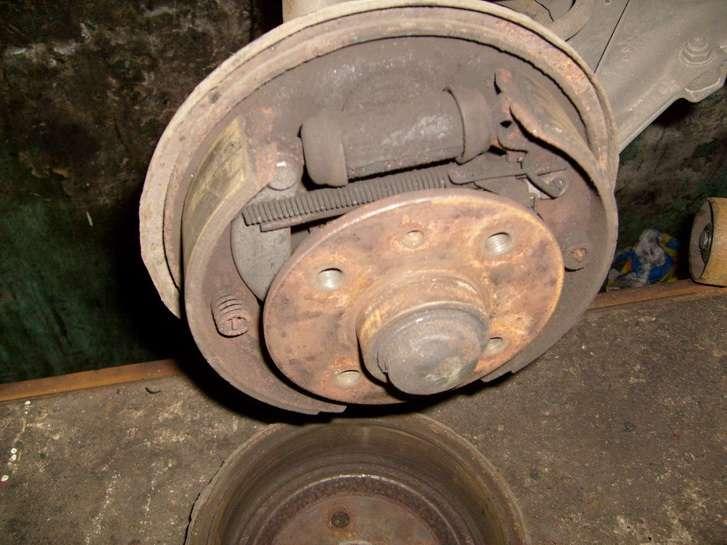 Układ hamulcowy sprawia problemy jeśli się o niego nie dba. Zapieka się linka hamulca ręcznego (Fot. 6), samoregulatory szczęk, cylinderki hamulcowe (Fot. 7). Po dużych przebiegach korozja widoczna jest na przewodach hamulcowych (Fot. 8), w hamulcach przednich zapiekają się prowadnice zacisku hamulcowego (Fot. 9) co powoduje zablokowanie koła. Czasami też nie wytrzymuje pompa hamulcowa.