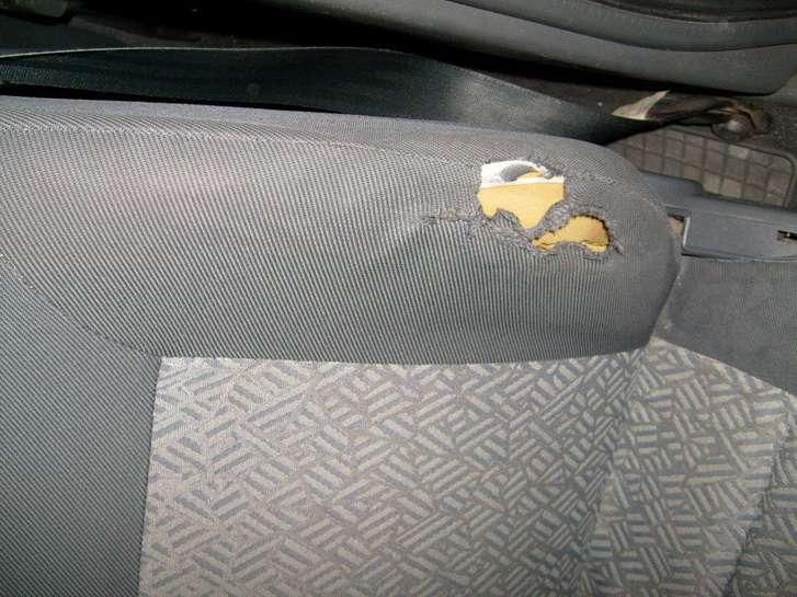 Wnętrze dobrze dopracowane i przestronne. Wszystkie elementy sterowania są dostępne pod ręką, jednak jest wiele niedoróbek typu odchodzące elementy tapicerki drzwiowej (Fot. 16,17), przecierające się obicia foteli (Fot. 18). Pękają elementy kratek nawiewów, sterowanie nagrzewnicą czasami szwankuje brak wtedy możliwości zmiany kierunku nawiewu.