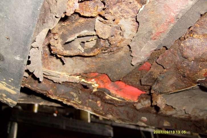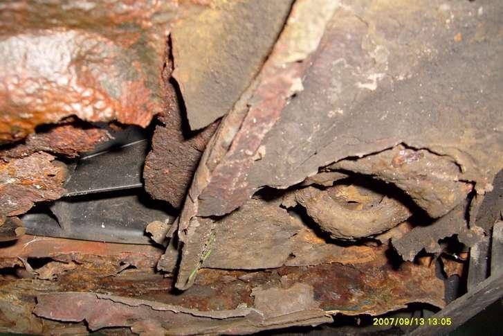 Ocynkowane blach nadwozia dają dobrą ochronę, jednak wiek robi swoje i jak zwykle możemy spotkać samochody bardzo dobre pod względem karoserii jak i skorodowane do granic możliwości (Fot. 11). Samochody dobrze utrzymane wyglądają z wierzchu bardzo ładnie, jednak najczęściej spód i elementy mocowania zawieszenia nie są zbyt dobrze zachowane. W samochodach z dużym przebiegiem na karoserii widać ślady korozji czasami aż do całkowitej perforacji (Fot. 12).