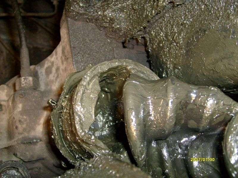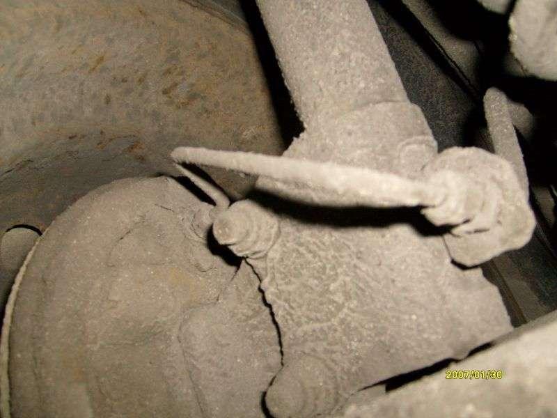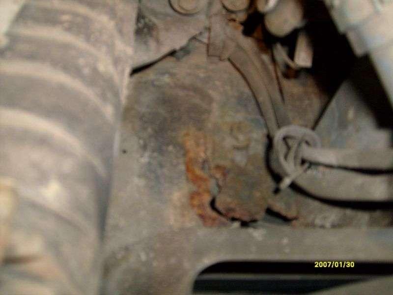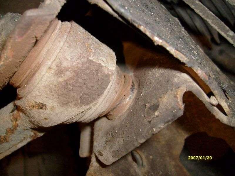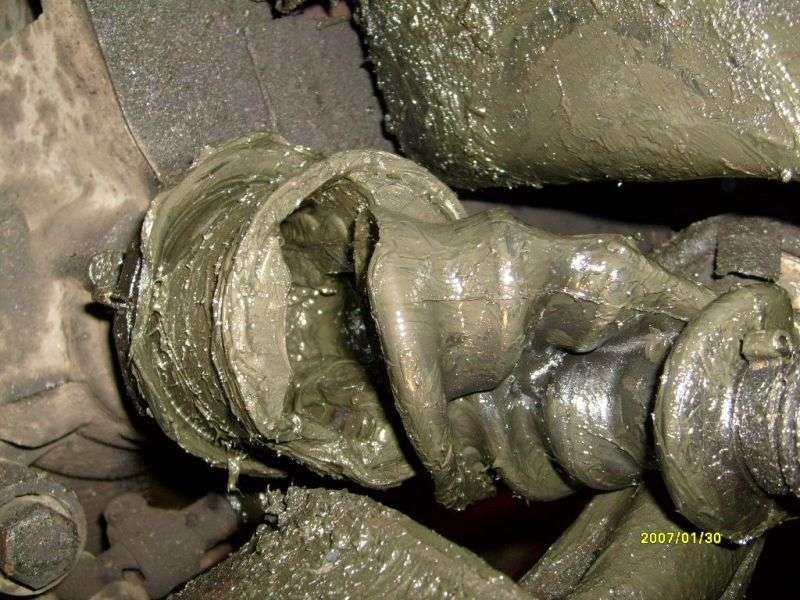 Często dochodzi do uszkodzenia tulei metalowo - gumowych wahacza /Fot. 15/, co w drastycznych przypadkach prowadzi do wyrwania półosi ze skrzyni biegów /Fot. 16, Fot. 17/, często wymienia się amortyzatory. /Fot. 18/