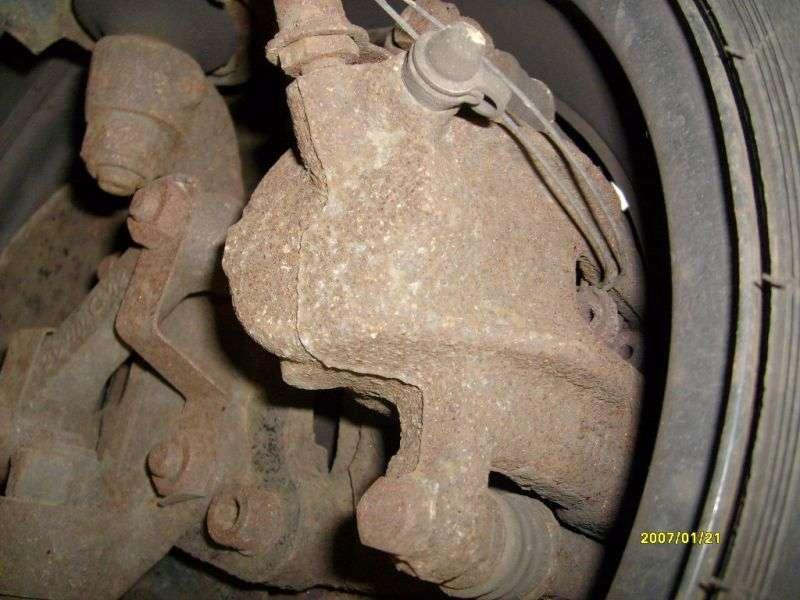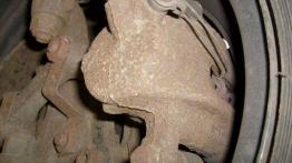 W samochodach z początku produkcji system tarczowy znany z fiata 125 p, w nowszych układ mieszany systemu LUCAS z bębnami z tyłu. Często zapiekają się tylne hamulce, korodują tłoczki zacisków przednich, silnie korodują przewody hamulcowe i same zaciski oraz ich prowadnice /Fot. 3, Fot. 4/.