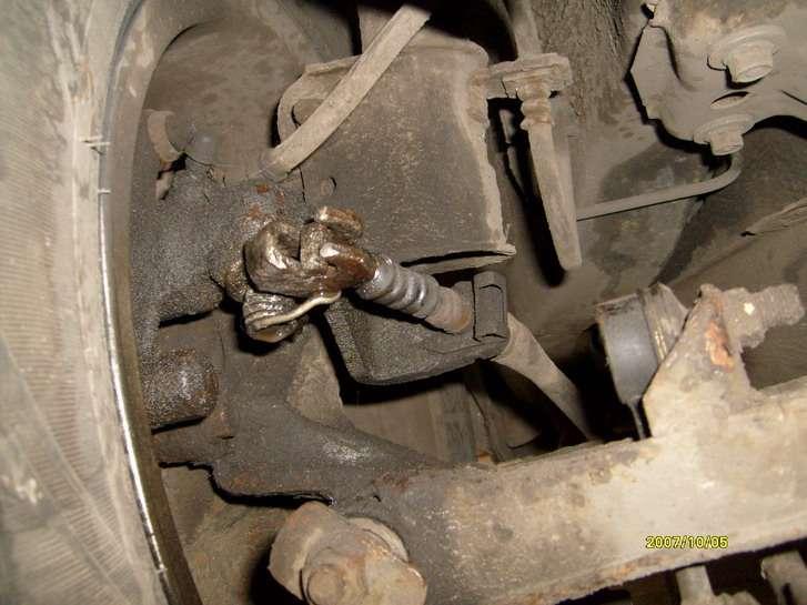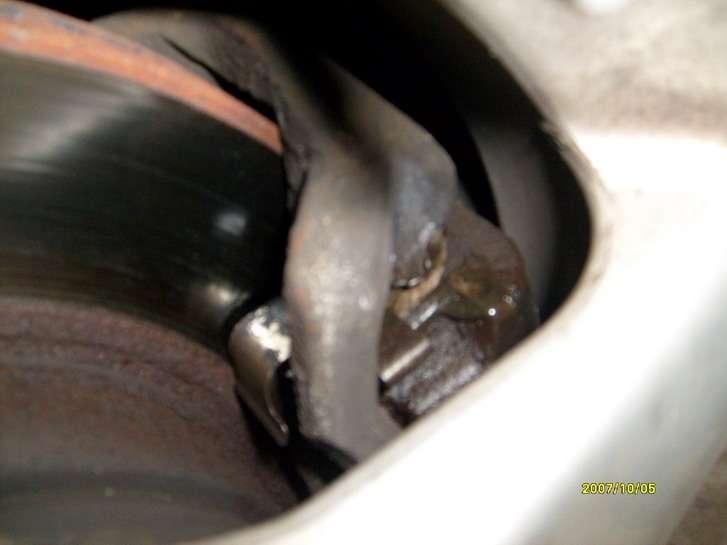Układ dosyć precyzyjny, hamuje dobrze jednak poszczególne szczególnie na tylnej osi ulegają zapieczeniu (Fot. 4) powodując blokadę. Przednie zaciski uwielbiają wprost się zapiekać, a najczęściej jest to spowodowane uszkodzeniem osłon gumowych tłoczków (Fot. 5), również linka hamulca ręcznego dosyć często ulega uszkodzeniom.