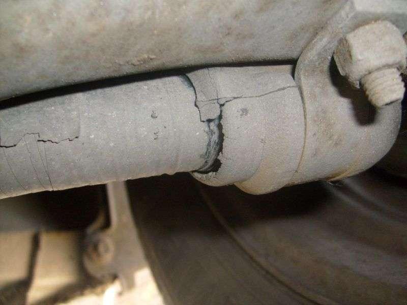 Nie zaobserwowano poważnych usterek, raczej normalne zużycie zważywszy jednak na wiek auta trzeba się liczyć z silną korozją przewodów hamulcowych, tarcz /Fot. 9/, wyciekami z cylinderków tylnych oraz korozji tłoczka układu przedniego, co jest spowodowane w większości przypadków pęknięciami osłonek gumowych.