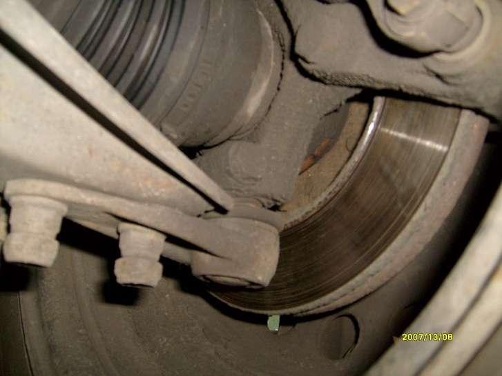 Zawieszenie podatne na uszkodzenia. Wybijają się sworznie wahacza (Fot. 6) i tuleje metalowo gumowe (Fot. 7). Trafia się dosyć często pęknięcie sprężyny kolumny Mc Phersona (Fot. 8). Dosyć często uszkodzeniu ulegają łączniki drążka stabilizatora (Fot. 9).
