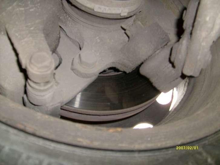 Często dochodzi do korozji elementów układu przewodów metalowych, zapiekają się prowadnice zacisków hamulcowych z przodu oraz elementy hamulca pomocniczego co może prowadzić do przyspieszonego zużycia elementów ciernych /fot 5/.