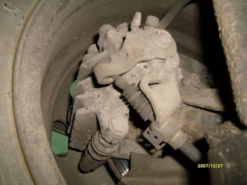 Hamulce „czwórki" to przeważnie system tarczowy, choć spotyka się nieliczne „czwórki z mieszanym układem. Należy zwracać uwagę na dźwignie hamulca ręcznego przy zaciskach, gdy dojdzie do zapieczenia nie obejdzie się bez demontażu zacisku i kosztownej naprawy /Fot. 3/. Dość często obrywają się kabelki układu ABS, w wyniki nie fachowej naprawy bądź dostania się ciała obcego pomiędzy czujnik a tarczę może dojść do zwichrowania tarczy układu ABS i jego wadliwe działanie.