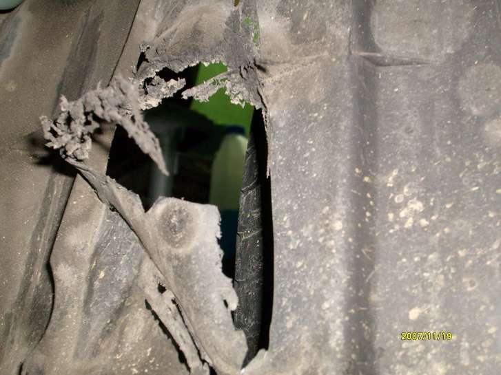 Zbyt młode egzemplarze żeby można mówić o korozji, po za tym spora część nadwozia jest wykonana z tworzywa jednak spód auta jak widać nie wygląda tak rewelacyjnie. Widać ślady korozji na podzespołach i w miejscach karoserii, do których mocowane są elementy zawieszania, wypadają również szkiełka bocznych kierunkowskazów (Fot. 4), nadkola montowane fabrycznie lubią się obluzować w mocowaniach, co jest przyczyną ocierania przy zakrętach o oponę co powoduje taki efekt: (Fot. 5)