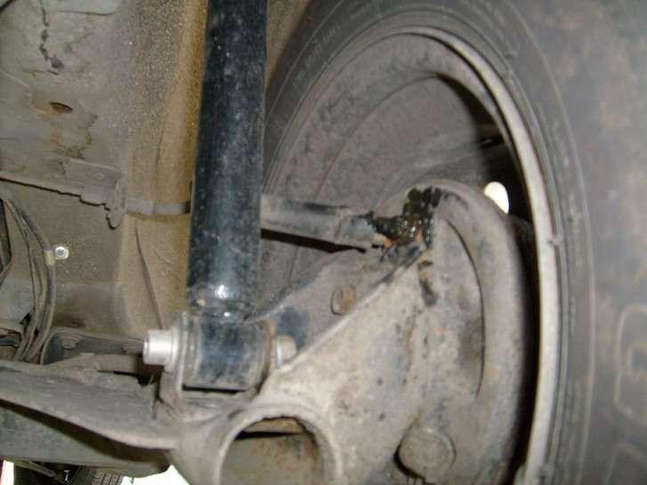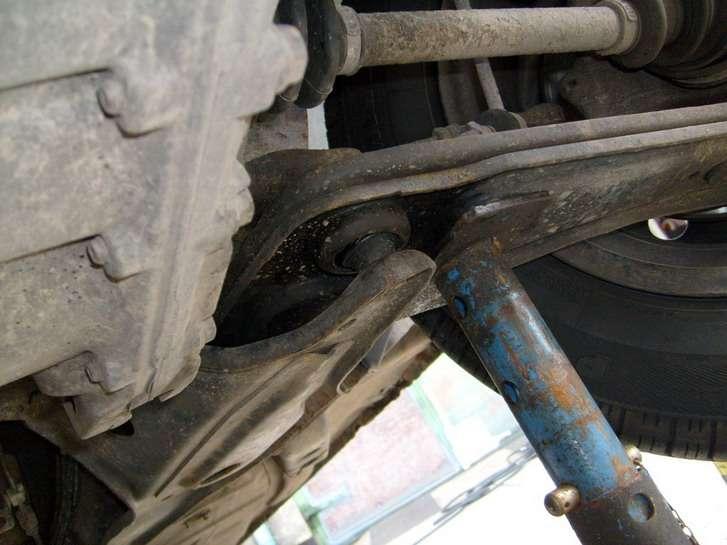 Często dochodzi do uszkodzenia tulei metalowo gumowych wahacza, (Fot. 6) wymienia się też łączniki drążka stabilizatora (Fot. 7) oraz gumowe elementy drążka (Fot. 8). Często wymienia się amortyzatory (Fot. 9) oraz łożyska kół tylnych.