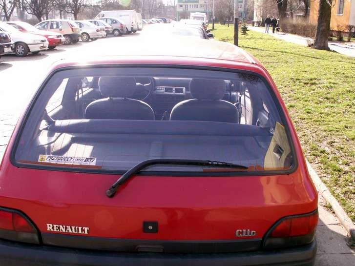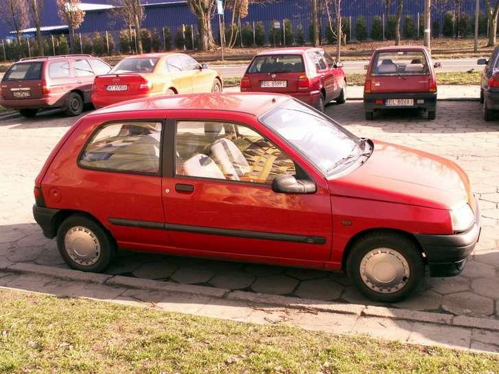 Duży plus należy się również za montaż sygnału dźwiękowego informującego o niewyłączeniu świateł. Lusterka zewnętrzne, regulowane ze środka mają bardzo duże tzw. martwe pole. Przed wykonaniem jakiegokolwiek manewru należy się upewnić czy aby na pewno obok nas nie jedzie żaden samochód. Pochwalić należy dość szerokie wnętrze i spory rozstaw osi wynoszący 2,47 m, które umożliwiają wygodną podróż czterem osobom. Swoją drogą zauważyłem, że z tyłu siedzi się wyżej, kanapa jest znacznie twardsza od przednich foteli, co doskonale wpływa na kondycję kręgosłupów pasażerów siedzących z tyłu. W moim egzemplarzu brakuje niestety zagłówków tylnej kanapy. Nad głową konstruktorzy mogli wygospodarować więcej miejsca, ale nie ma co nadmiernie narzekać bowiem w Clio II, ilość miejsca, szczególnie z tyłu jest jeszcze skromniejsza. Czyżby uznano, że w pierwszej generacji panowała zbyt duża swoboda? Słowa uznania należą się za pojemność bagażnika wynoszącą 265 dm z niską linią załadunku i regularnymi kształtami. Typowym sprytnym rozwiązaniem stosowanym masowo w samochodach francuskich jest umieszczenie koła zapasowego w specjalnym koszu pod samochodem, które nie ogranicza przestrzeni bagażnika. W najtańszej wersji kanapa jest składana w całości.