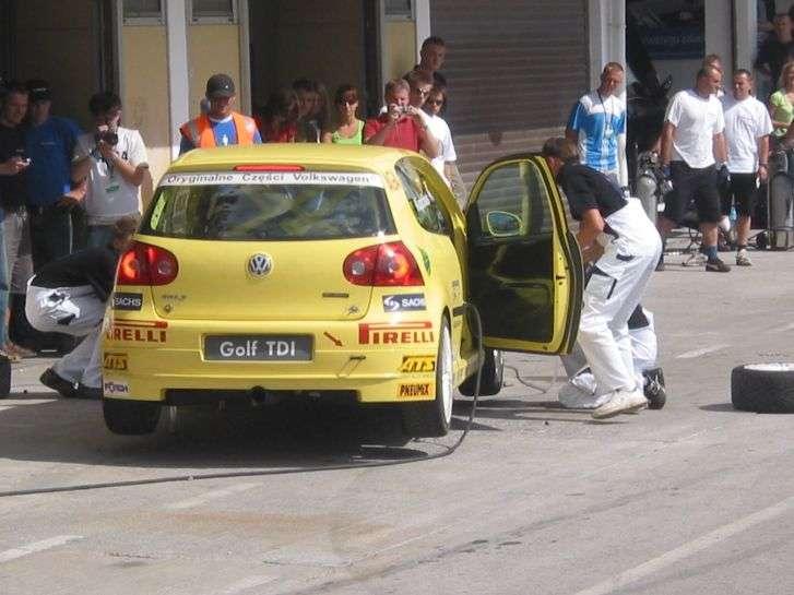 Piątkowa kwalifikacje stawiały ich na czołowych (1 –szym i 2 –gim) miejscach startu, t.j. pole position. Niestety Golec spóźnił się na start za co zgodnie z regulaminem został ukarany ustawieniem na ostatnim 19 miejscu i wydawało się, że nie istnieje możliwość aby nowy Golf nie wyjechał na Litwę. Życie jednak a szczególnie wyścigi sprawiają różne niespodzianki.