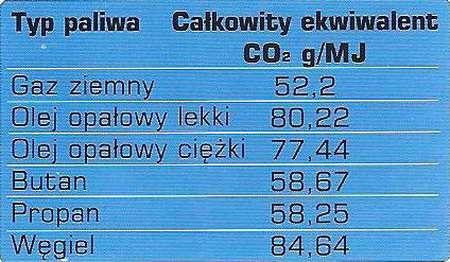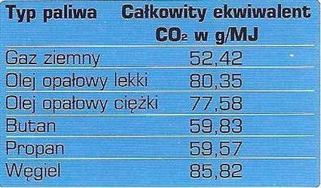 Na podstawie powyższej tabeli możemy sklasyfikować paliwa ze względu na efekt cieplarniany w następującej kolejności: