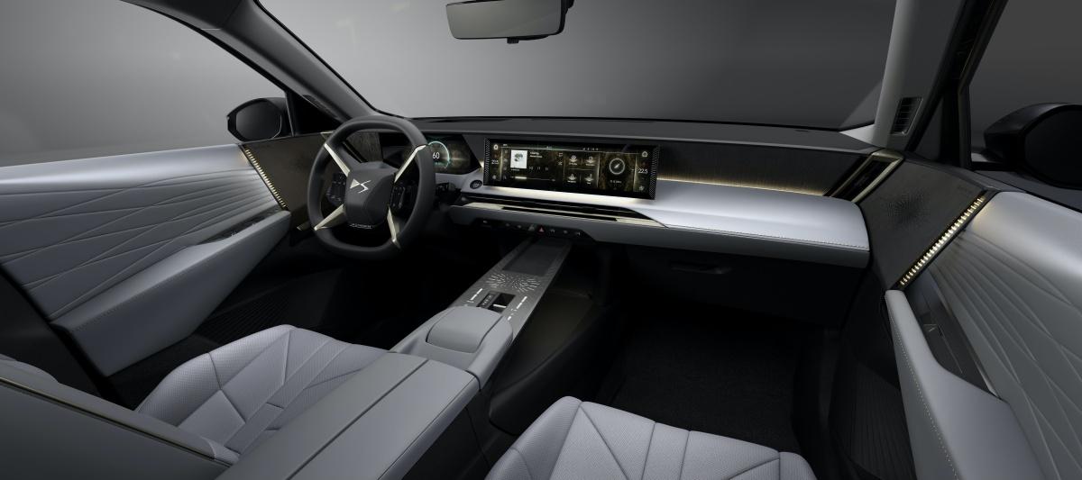 Przed kierowcą znajdziemy 10-calowy wyświetlacz cyfrowych wskaźników, zaś centrum dowodzenia stanowi poziomy, aż 16-calowy ekran systemu infotainment DS IRIS SYSTEM 2.0. Ma on przypominać obsługą smartfona, zapewnia spore możliwości personalizacji i korzysta z ChataGPT. Jest to wszechstronny system "all-in-one", który obejmuje 6-głośnikowy system audio (lub 14 głośników w systemie Hi-Fi Electra 3D by Focal), 4 porty USB-C, łączność Bluetooth oraz bezprzewodowe połączenie z Apple CarPlay i Android Auto. Zapewnia on również dostęp do zdalnego zarządzania wybranymi funkcjami samochodu i funkcję EV Routing ułatwiającą planowanie tras. Jego uzupełnieniem jest wyświetlacz head-up o rozszerzonej rzeczywistości. Na liście opcji znajdziemy też kamerę na podczerwień, rozpoznającą po zmroku pieszych i rowerzystów z odległości nawet 300 metrów.