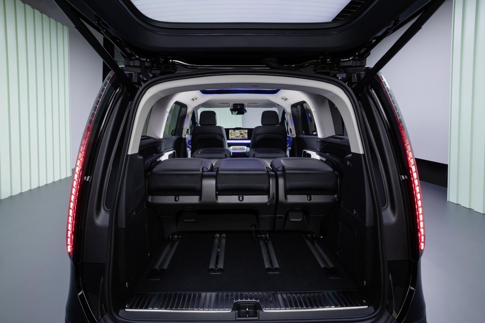 Wnętrze VLE to przeskok o dwie generacje w porównaniu do tego, co znaliśmy do tej pory. Kokpit został zdominowany przez opcjonalny MBUX Superscreen, który zawiera w sobie trzy ekrany pod jednym szklanym panelem – 10,25-calowy wyświetlacz dla kierowcy oraz dwa panele o przekątnej 14 cali, jeden centralny i drugi na wprost dla pasażera. Aby zapewnić samemu kierowcy pełne skupienie na drodze, ekran pasażera został wyposażony w inteligentną funkcję ochrony prywatności opartą na kamerze. Jeśli system wykryje, że wzrok osoby prowadzącej samochód wędruje w stronę wyświetlacza pasażera, obraz dla kierowcy zostaje automatycznie przysłonięty.