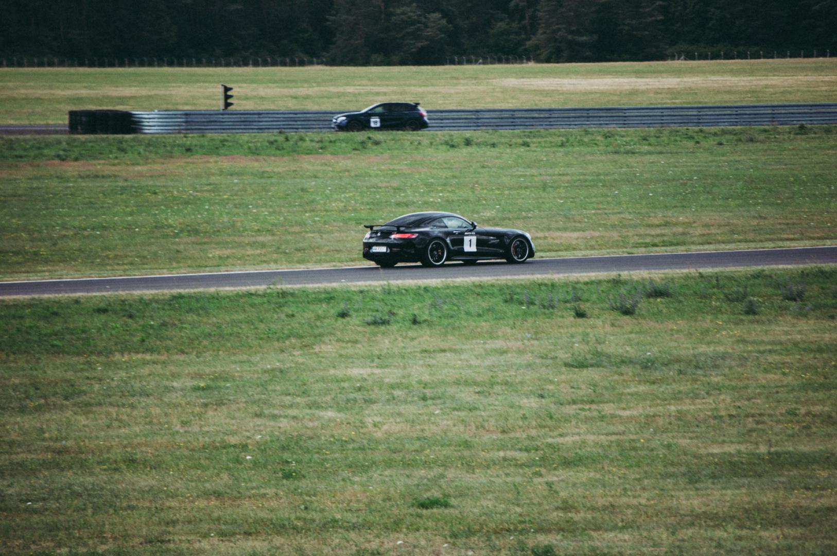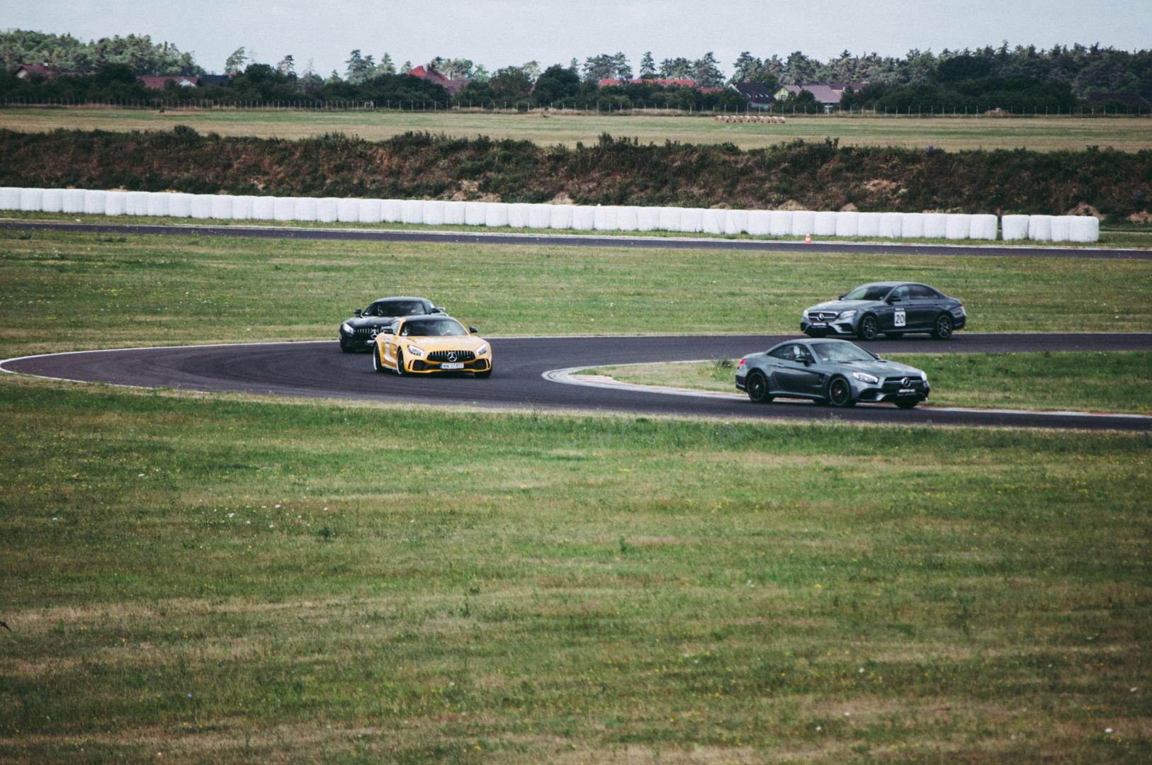 Klasyczna dla szkół AMG na całym świecie jest jednak nauka w konwencji lead and follow. Instruktor w pierwszym samochodzie pokonuje okrążenia na pętli toru, a za nim 4 czy 5 samochodów tworzy swego rodzaju pociąg. W ten sposób uczymy się jazdy linią wyścigową i kopiujemy punkty hamowania.