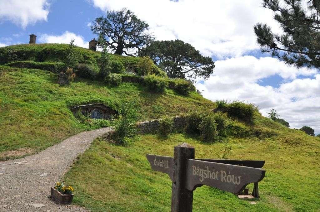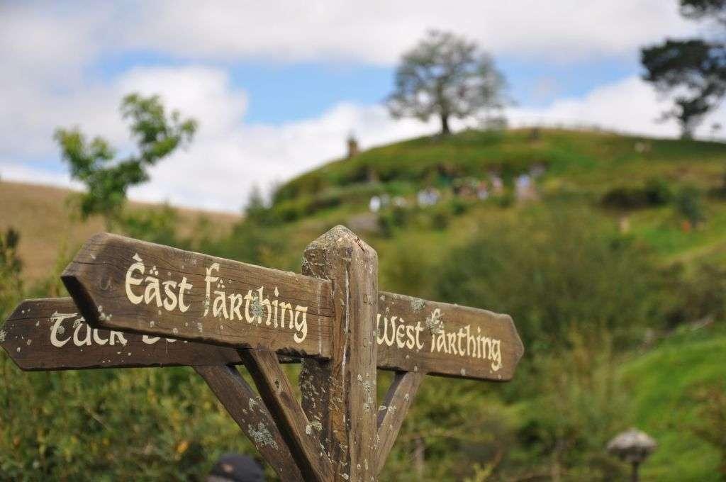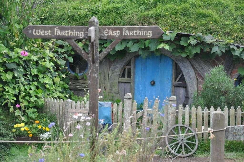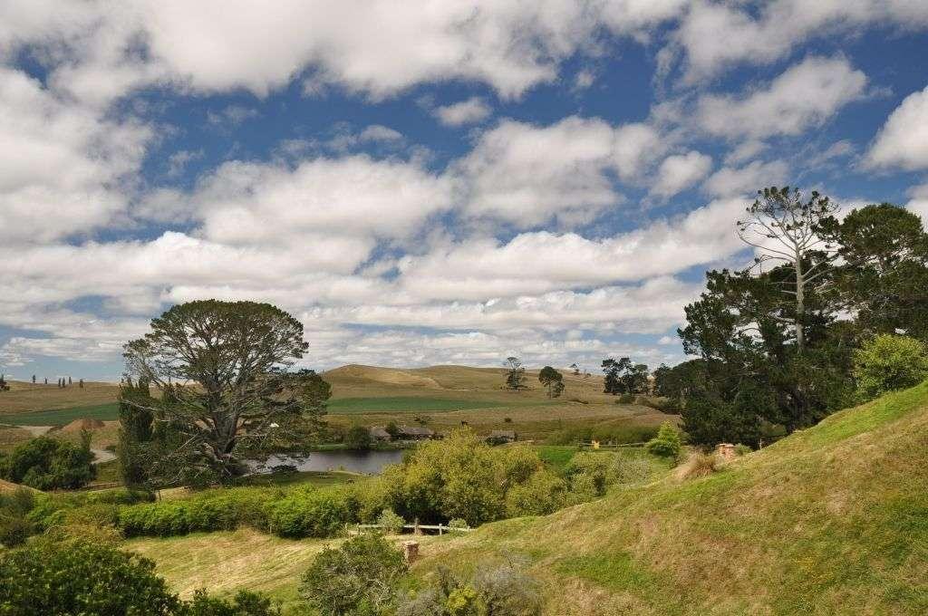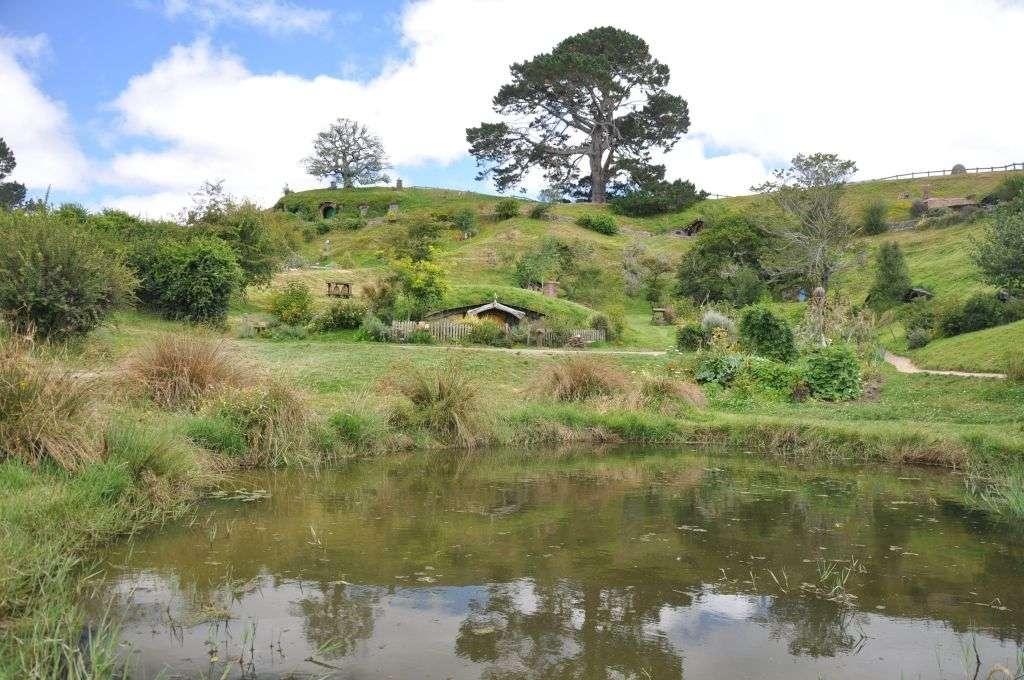 Podjeżdżamy do Hobbitonu. Osada powstała w 1999 roku na potrzeby tolkienowskiej trylogii. Podobno Peter Jackson (reżyser adaptacji filmowej Władcy Pierścieni) osobiście jeździł po okolicy, poszukując odpowiedniego miejsca do realizacji filmu. Szukał takiego miejsca, gdzie między innymi w tle nie znajdzie się żadne zabudowanie, które trzeba będzie następnie usuwać komputerowo. W końcu na północnej wyspie trafił na teren jednego z farmerów – pofałdowane łąki wyglądały bardzo malowniczo i spełniały wszystkie kryteria.