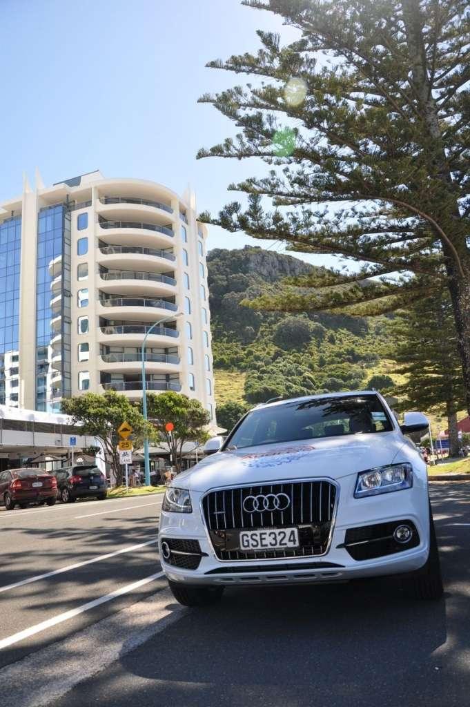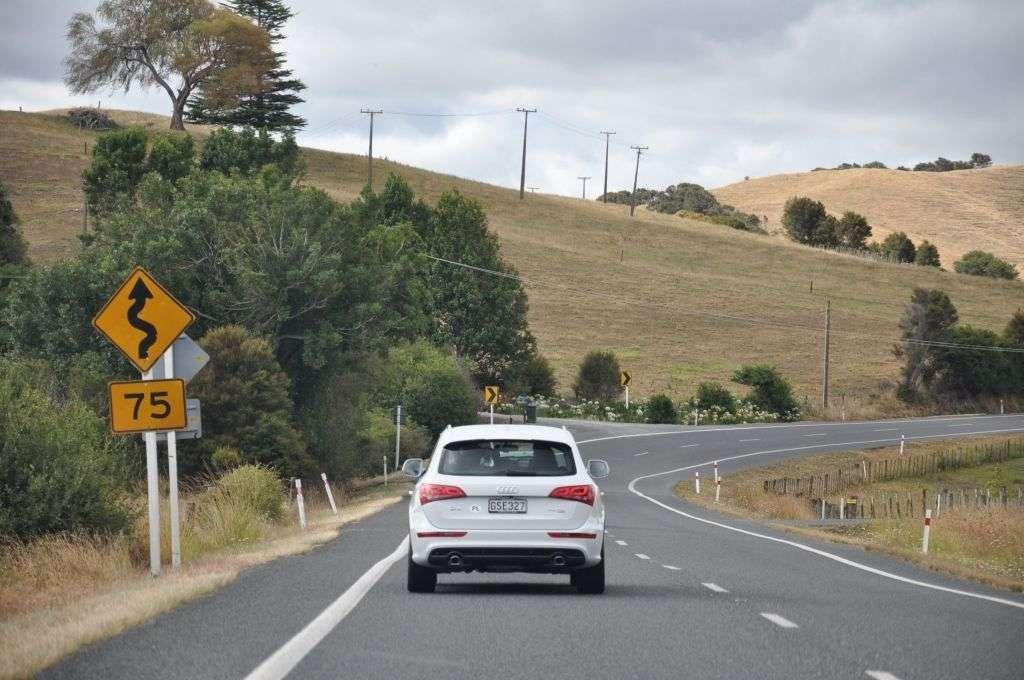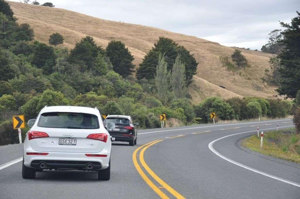 Ok, nie była to droga, której bym nie pokonał modelem Audi A1, ale dzięki temu, że testujemy akurat model Q5 mamy więcej dróg do wyboru i śmielej zjeżdżamy z asfaltu. Po pokonaniu krętej i zakurzonej drogi lądujemy jednak w kolejnym korku, więc wykonujemy efektowną nawrotkę na pięć samochodów i zakurzonymi już mocno SUVami znajdujemy w końcu przejezdną drogę do Whakatane.