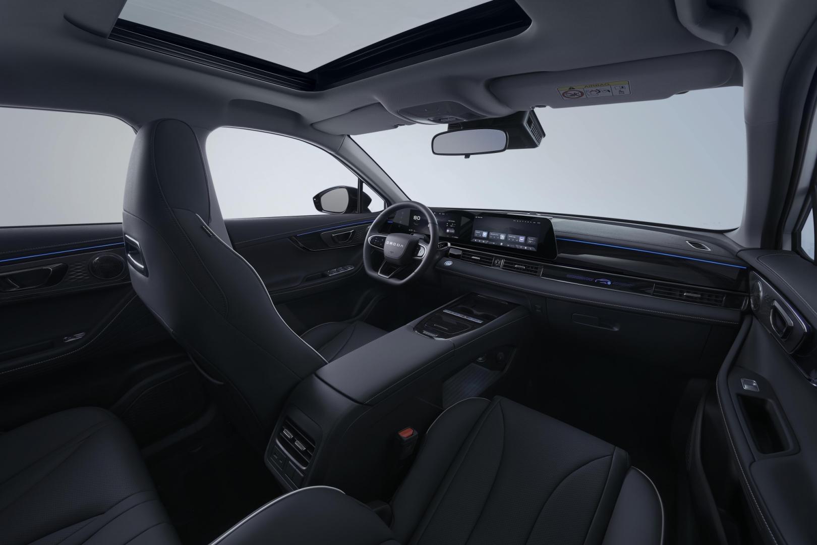 Kabina stanowi nawiązanie do Jaecoo 7, jednak ona również sprawia wrażenie bardziej konwencjonalnej. Centrum dowodzenia stanowi pionowy, 13,2-calowy ekran systemu infotainment z intuicyjnym interfejsem niczym w modelu 7 i bezprzewodową łącznością z Apple CarPlay i AndroidAuto. Przed kierowcą natomiast znalazł sie wyświetlacz cyfrowych zegarów o przekątnej 8,88". Atmosferę w kabinie poprawia ambientowe oświetlenie, natomiast producent szczyci się największym w segmencie dachem panoramicznym, o powierzchni aż 1,45 m².