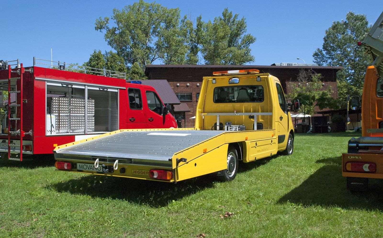 Innym wariantem była kanarkowo-żółta laweta, również zbudowana na modelu Movano. Kolorową trójkę zamknęła pomarańczowa trójstronna wywrotka, nadająca się na przykład do przewozu odpadów komunalnych bądź liści.