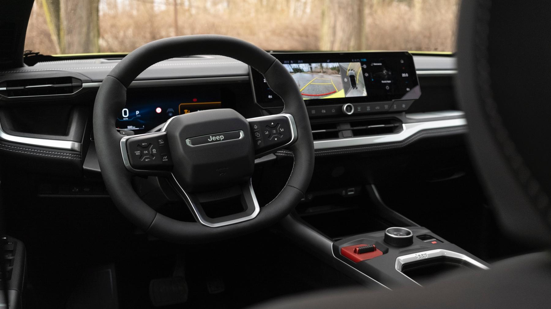 Uwagę zwracają czarne elementy wykonane ze specjalnego tworzywa, na którym – według producenta – drobne zarysowania mają być niewidoczne. Czas pokaże, czy to marketingowa obietnica, czy faktyczna zaleta. Osobny rozdział to aerodynamika, której Jeep poświęcił tym razem wyjątkową uwagę. Zabudowany grill, aktywne żaluzje w przednim zderzaku i kanały odprowadzające powietrze za tylnymi kołami – wszystko po to, by ograniczyć zużycie paliwa i wydłużyć zasięg wersji elektrycznej.